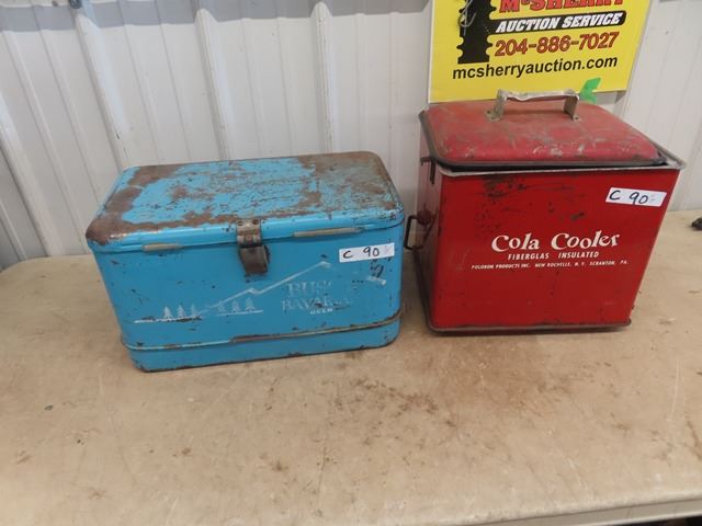 2 Picnic Coolers- Both are Metal 1) Bosch Bavarian Beer Adv 1) Cola Cooler