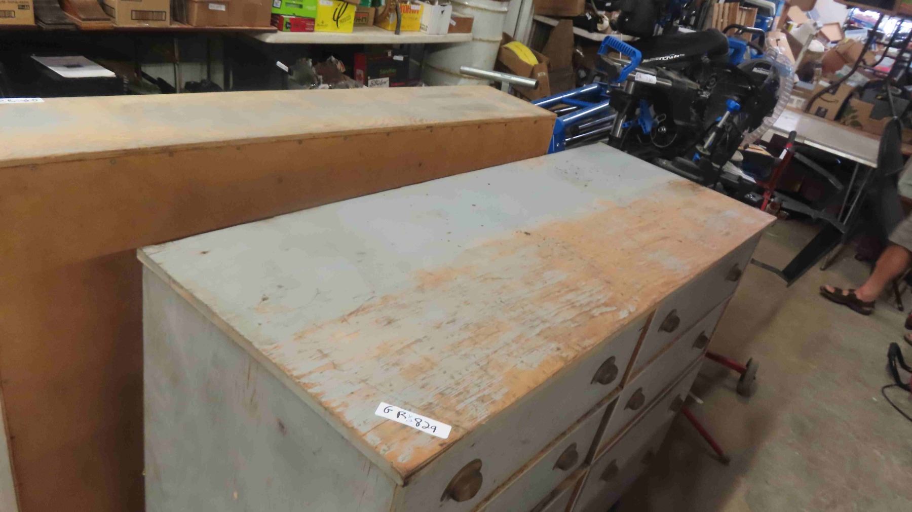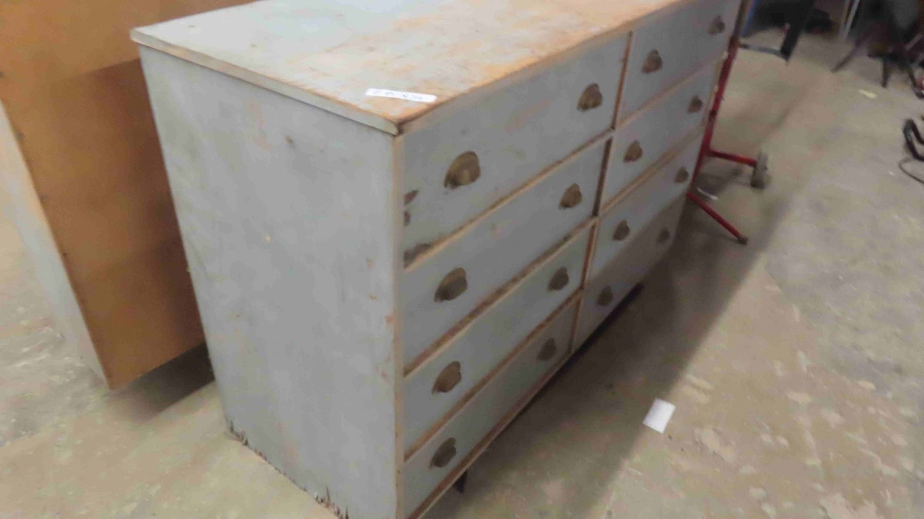2 Piece Wood Cabinet : Bottom Portion Has 8 Drawers and Measures 38'' x 57'' x 22'' ,