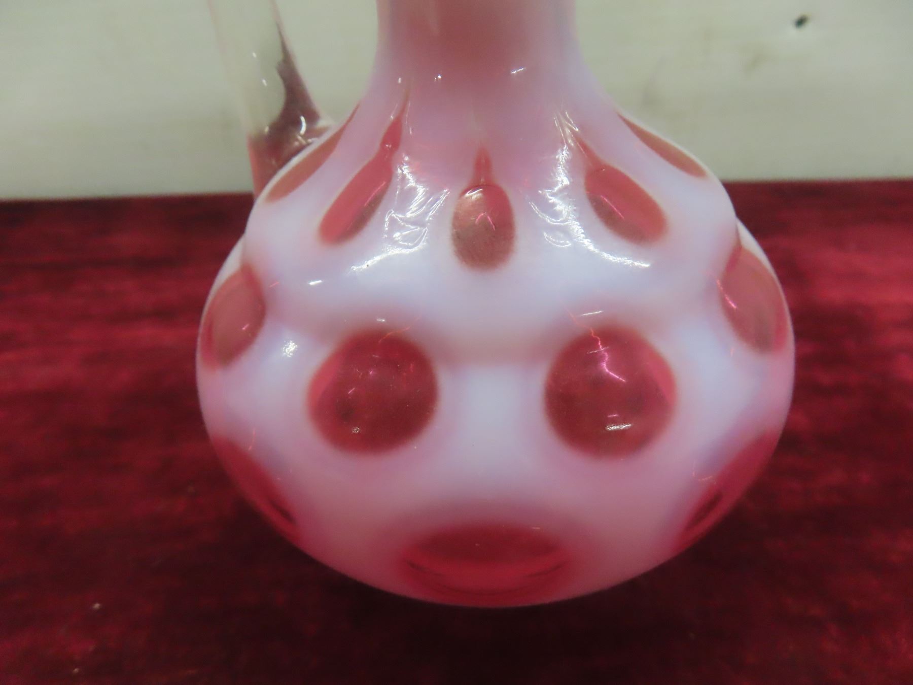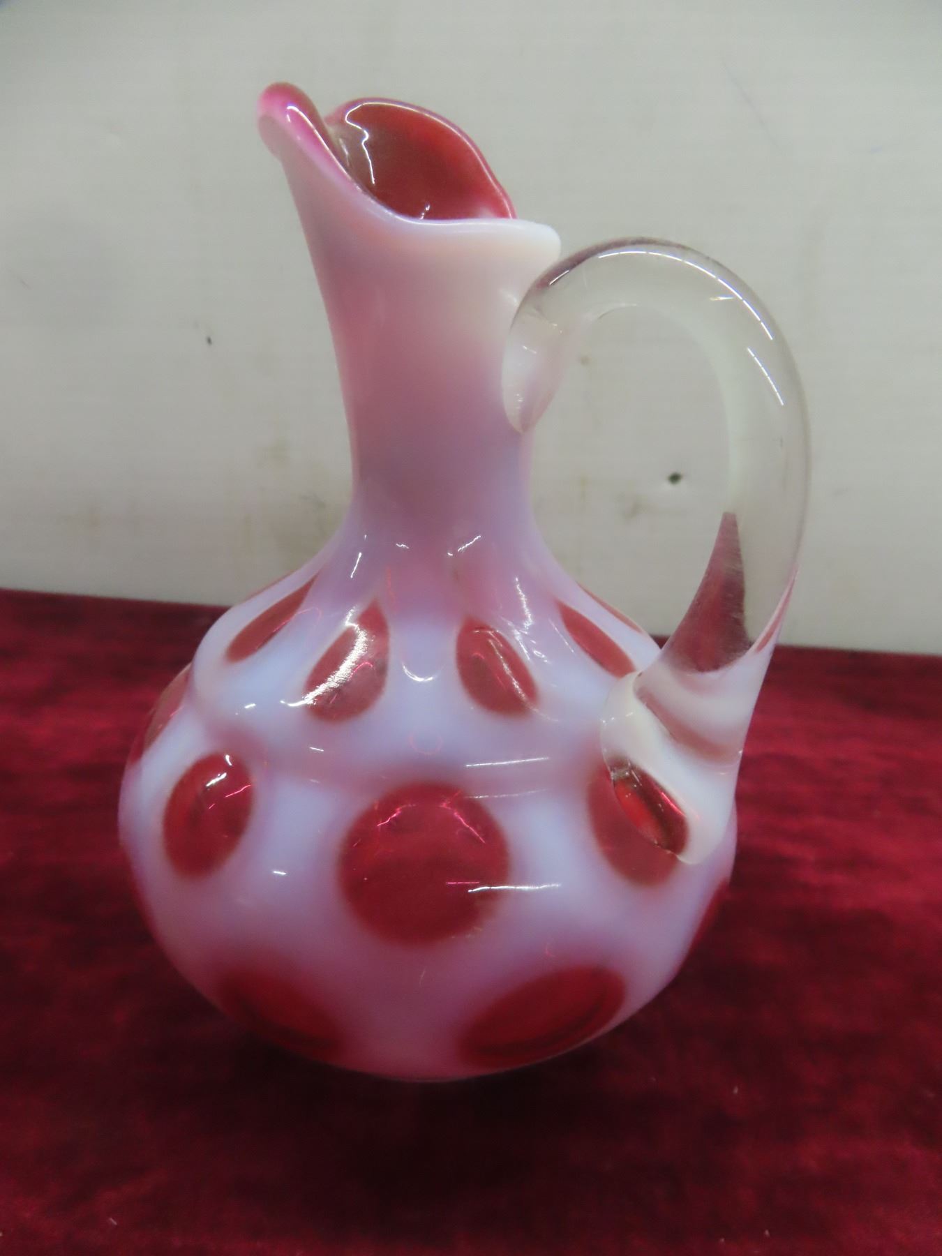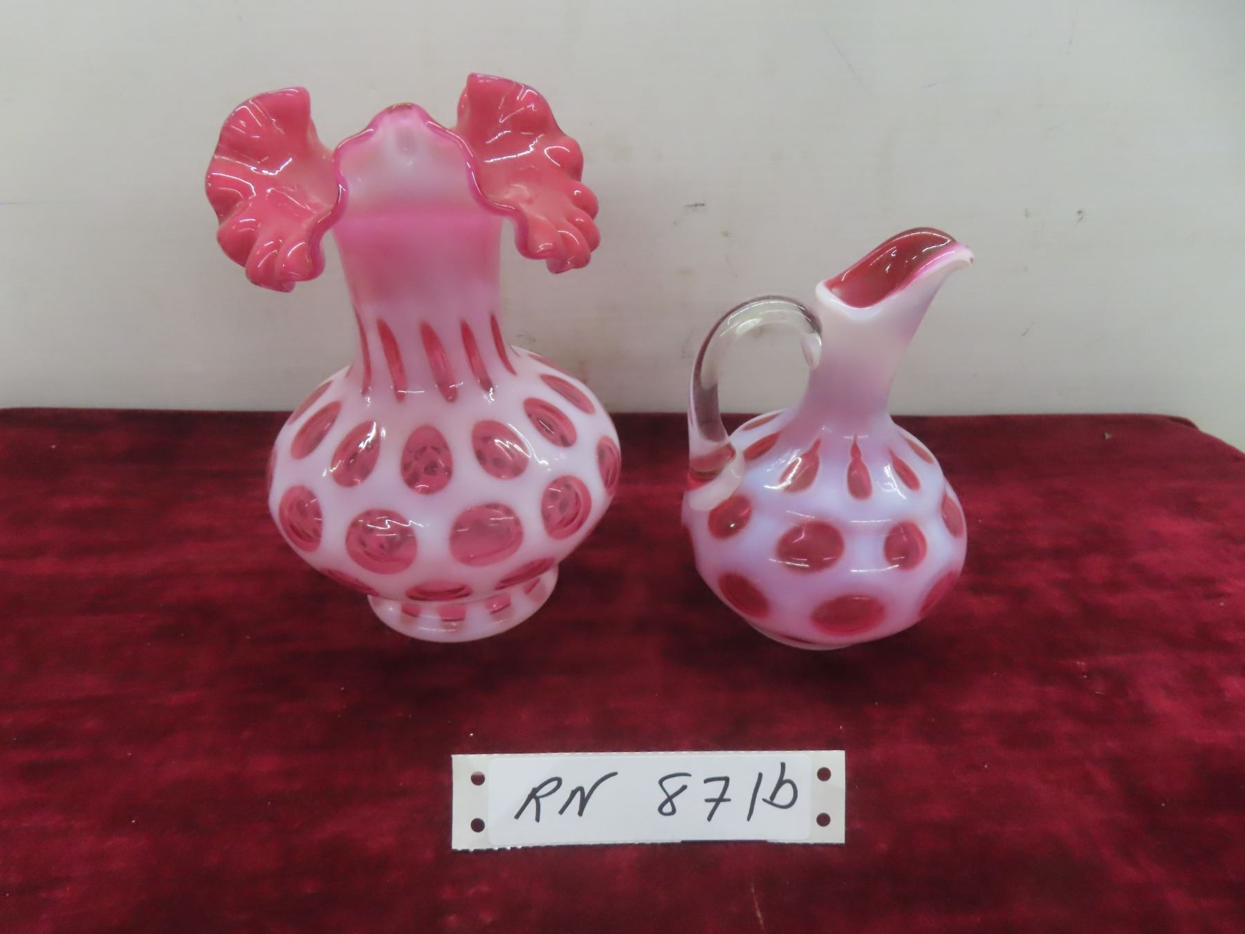 2 Pieces Fenton Cranberry Coin Dot Glass Vase + Cruet or Pitcher