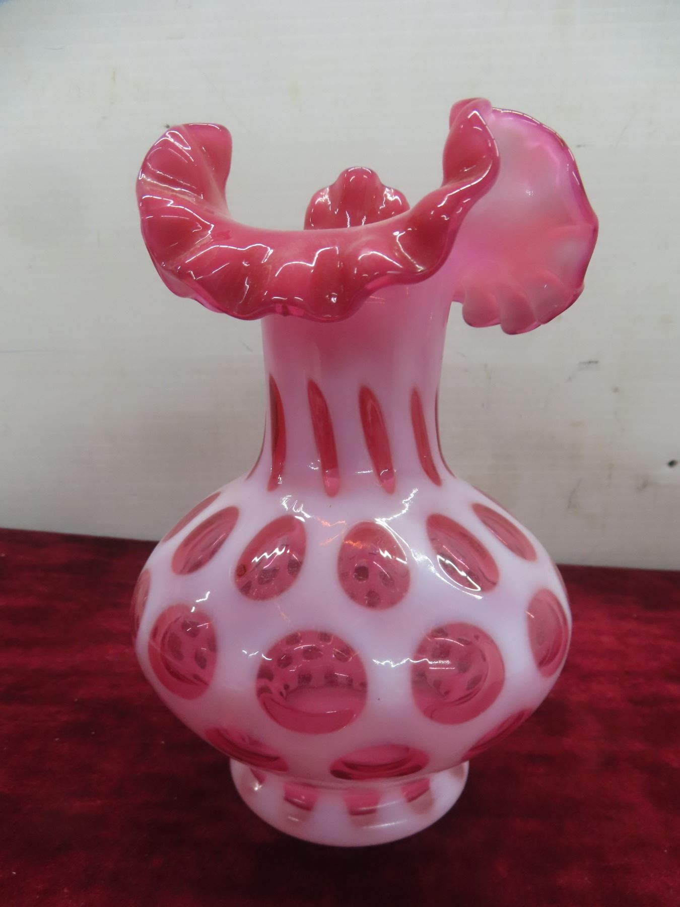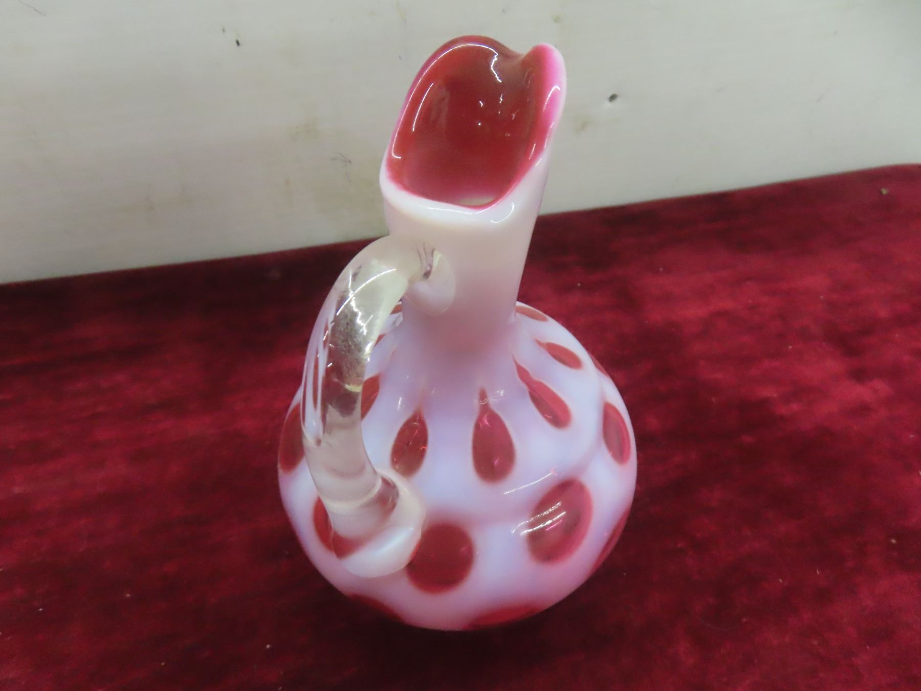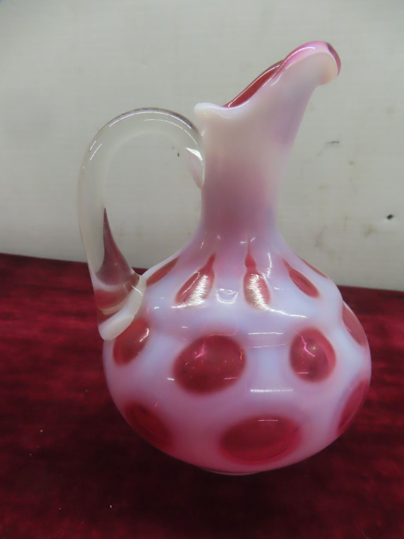 2 Pieces Fenton Cranberry Coin Dot Glass Vase + Cruet or Pitcher