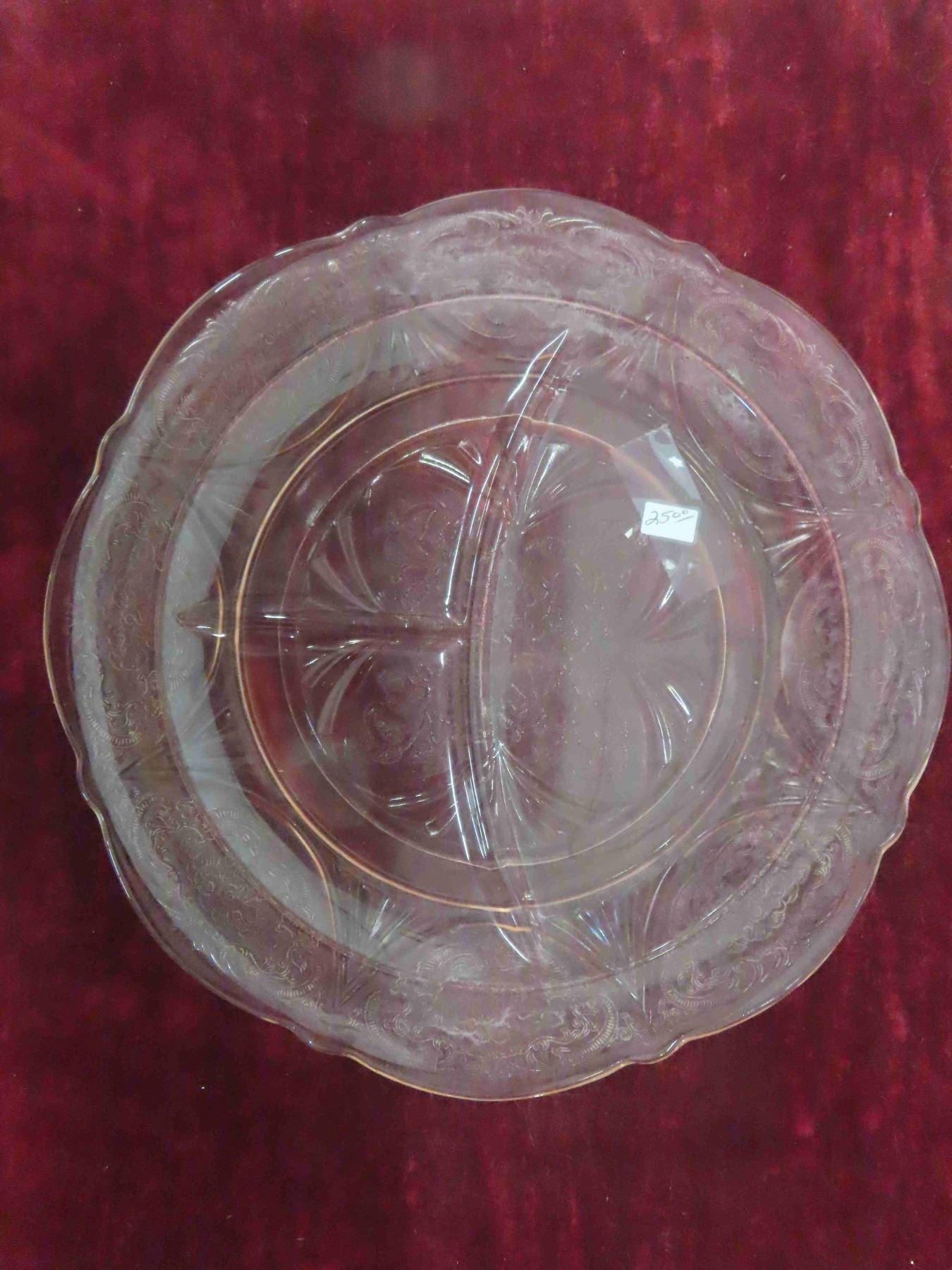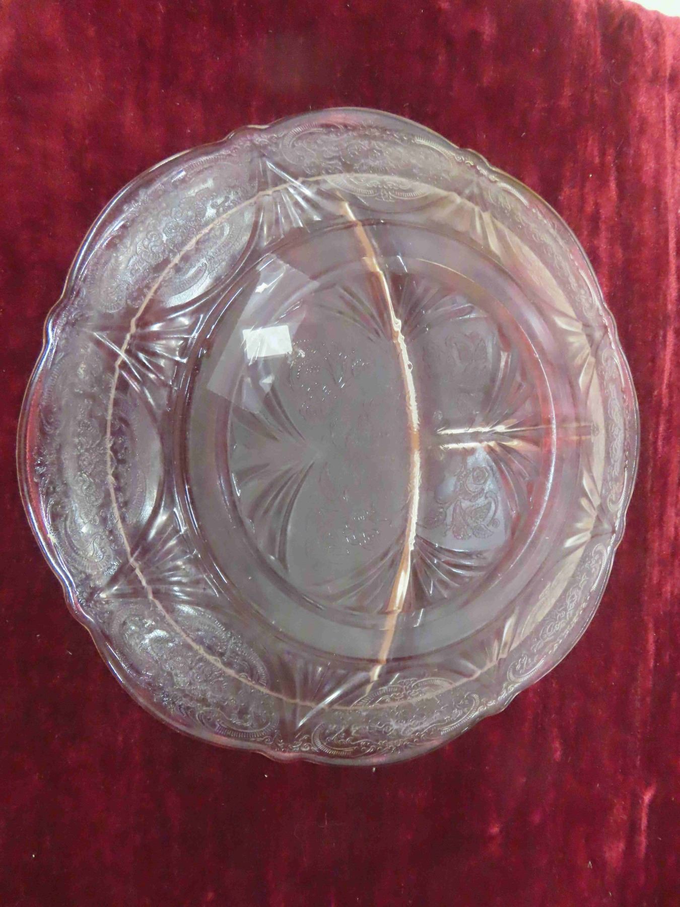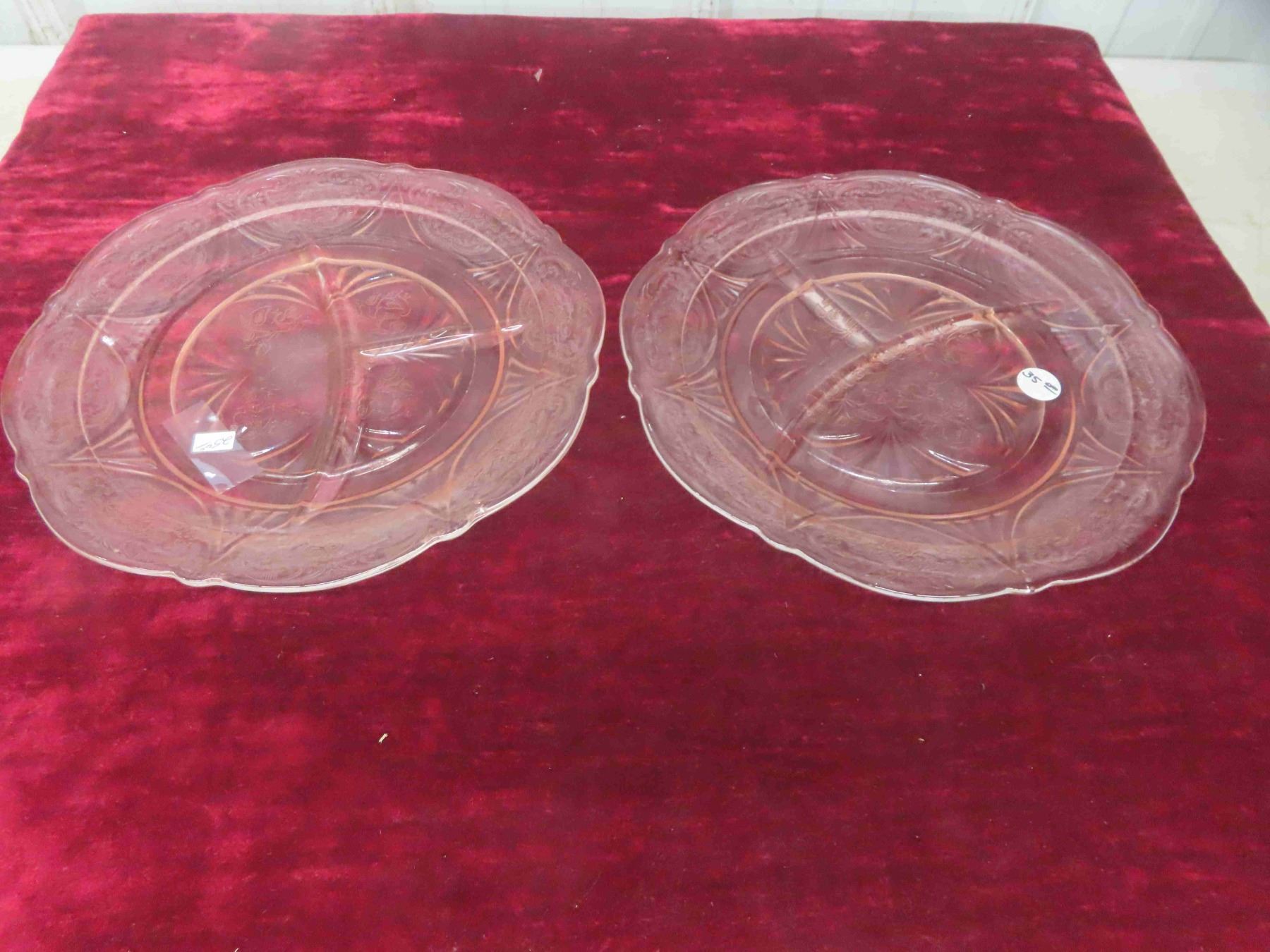2 Pink Depression Glass Divided Plates