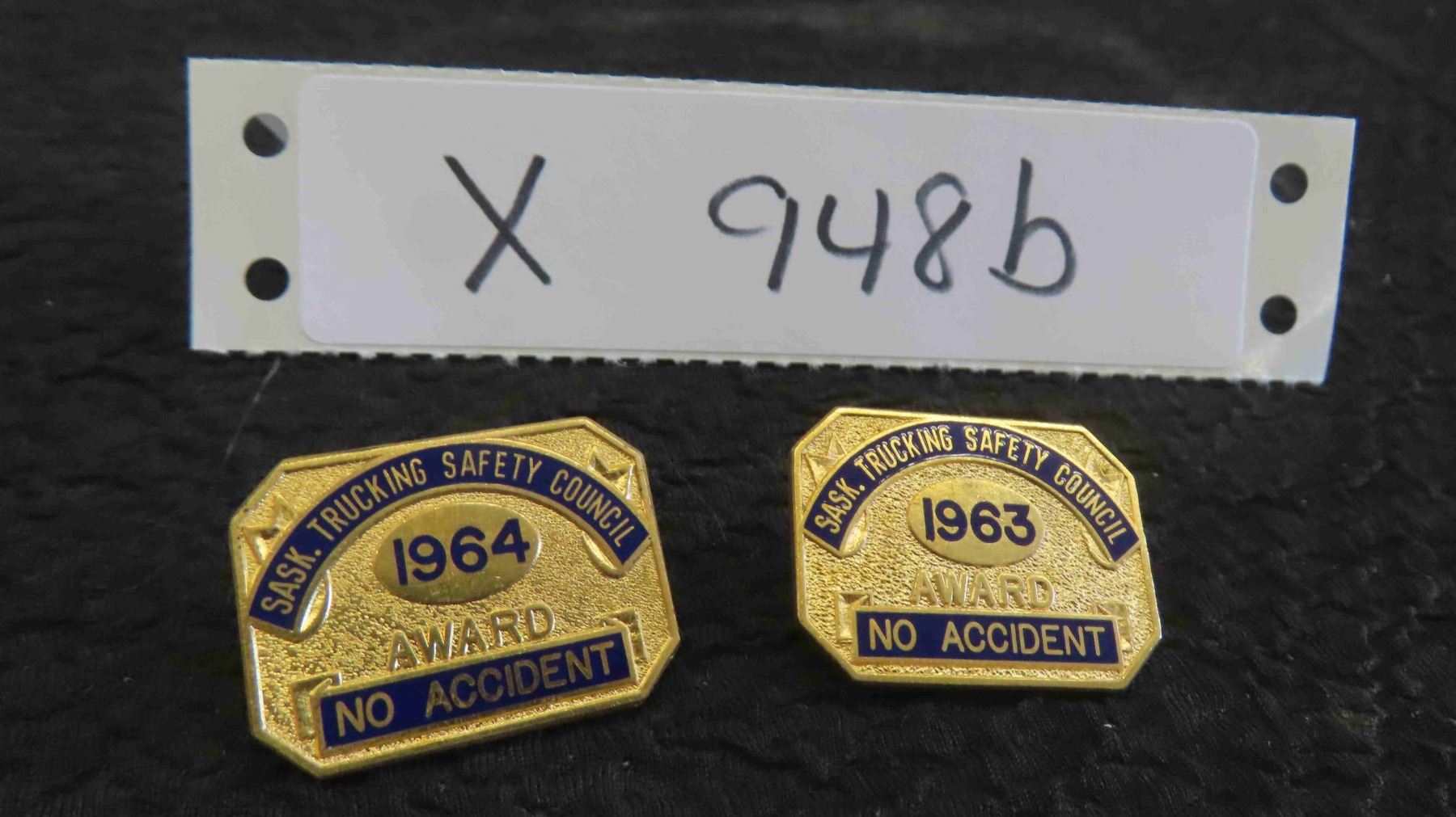 (2) Pins : 1963 & 1964 Saskatchewan Trucking Safety Council No Accident