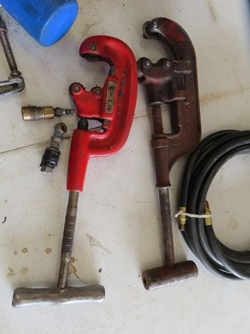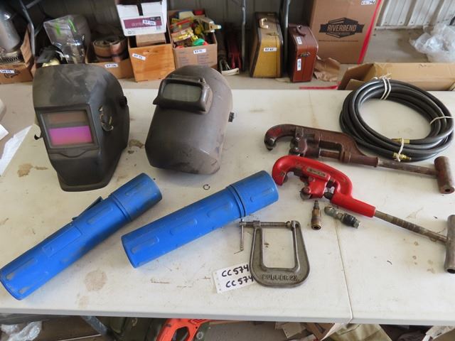 2 Pipe Cutters, Air Hose, Welding Masks, Welding Rods