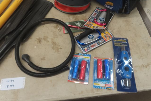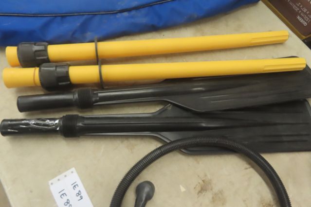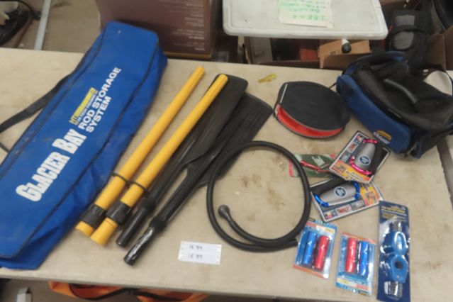 2 Plastic Boat Oars, Rod Storage Bag, Plano Tackle Bag, Flashlight, Jumbo Hooks, Air Pump