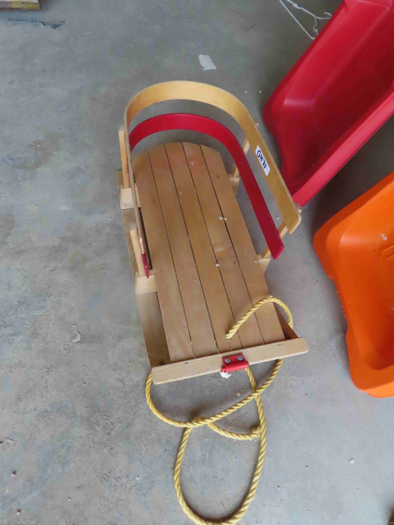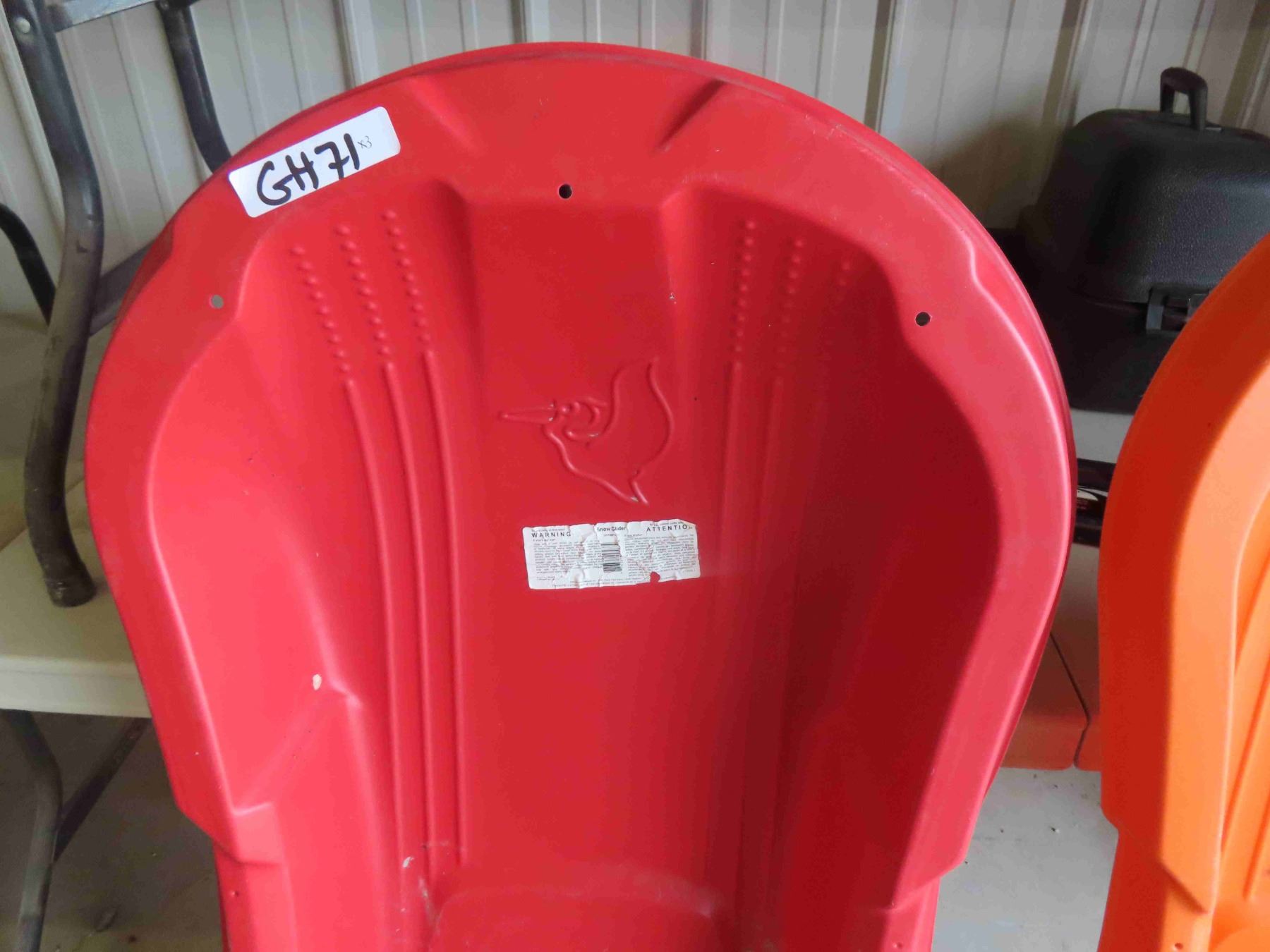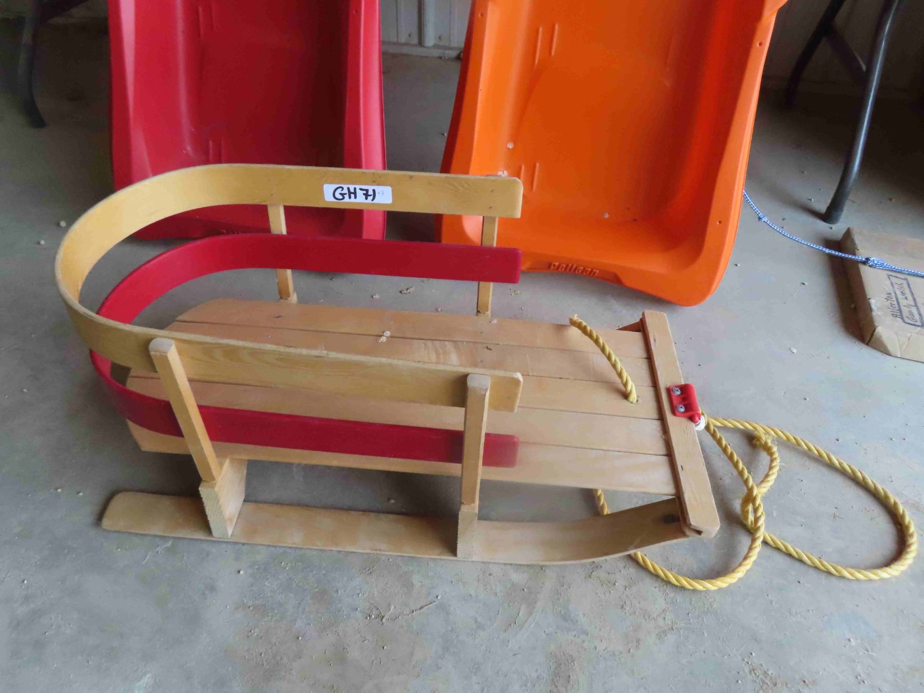2 Plastic Pelican Sled/ Short Toboggan , Wooden Kids Sleigh with Back + Side Rails