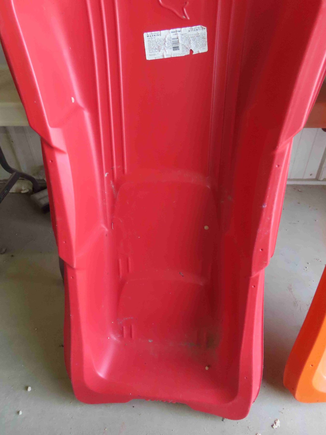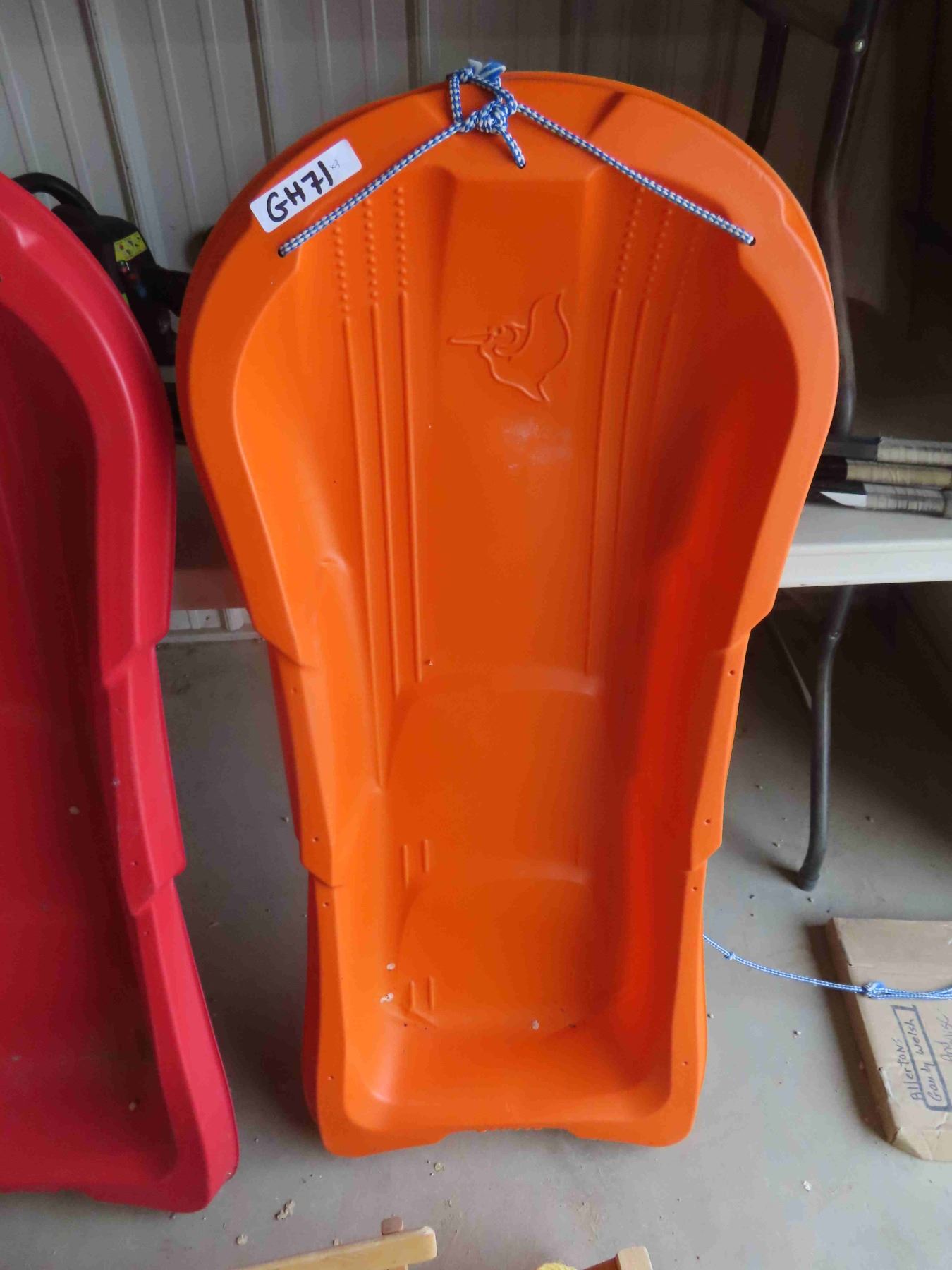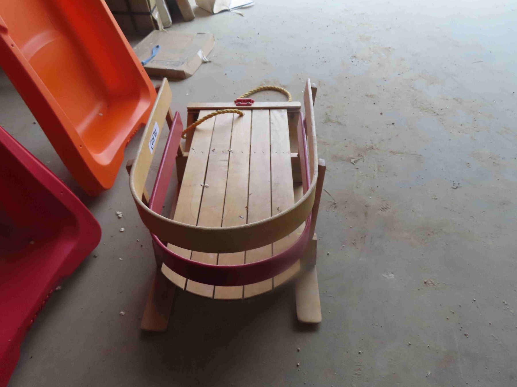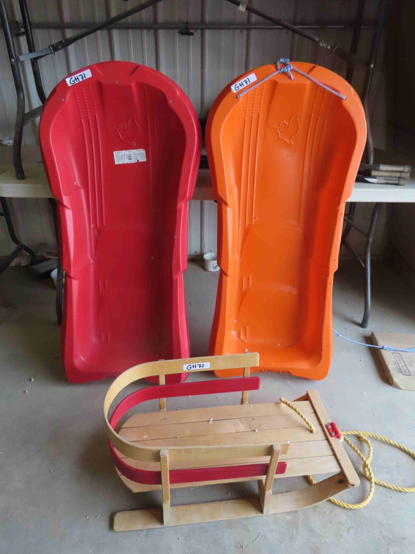 2 Plastic Pelican Sled/ Short Toboggan , Wooden Kids Sleigh with Back + Side Rails