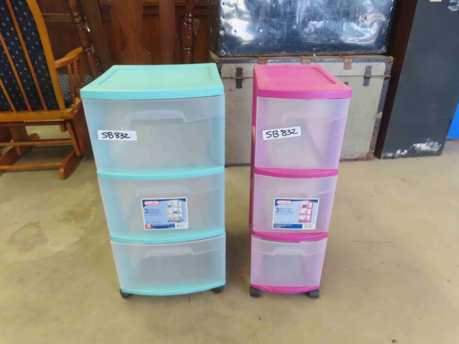2 Plastic Rolling Drawer Carts - Narrow + Medium Size