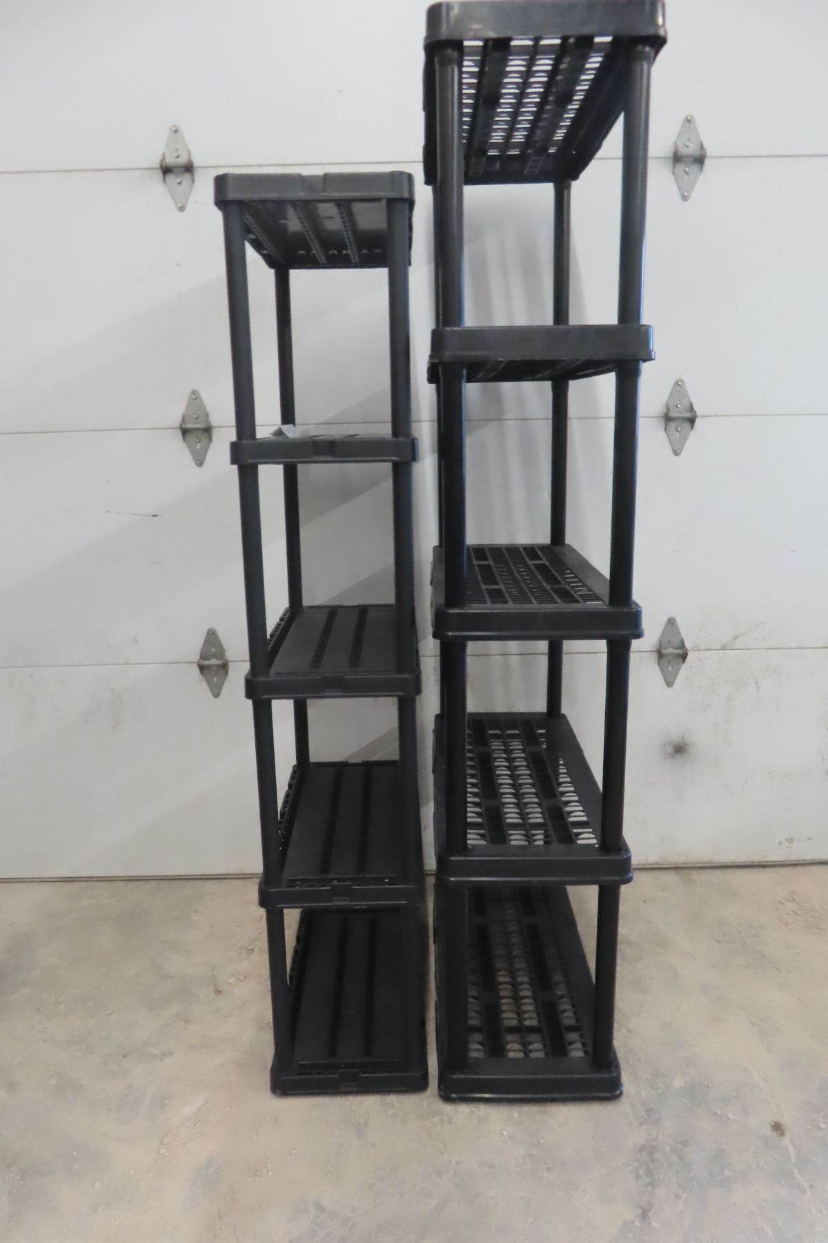 2 Plastic Shelving Units 71x31x14, 63x24x12