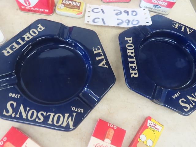 2 Porcelain Molson Ashtrays ( Excellent Condition) New Old Stock Cork Tip Rolling Papers, Spice Tins