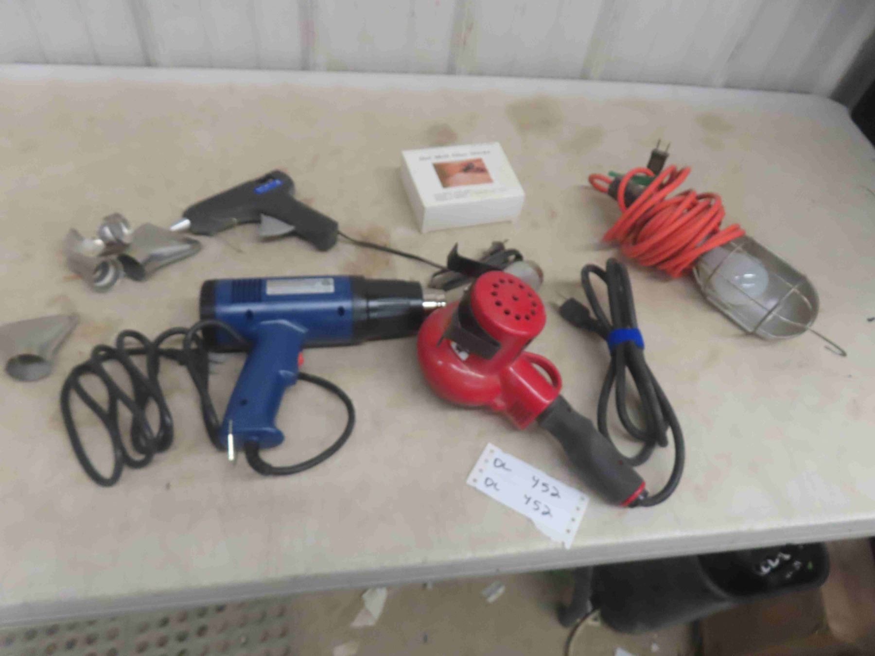 2 Power Heat Guns, Glue Gun & Sticks, Trouble Light