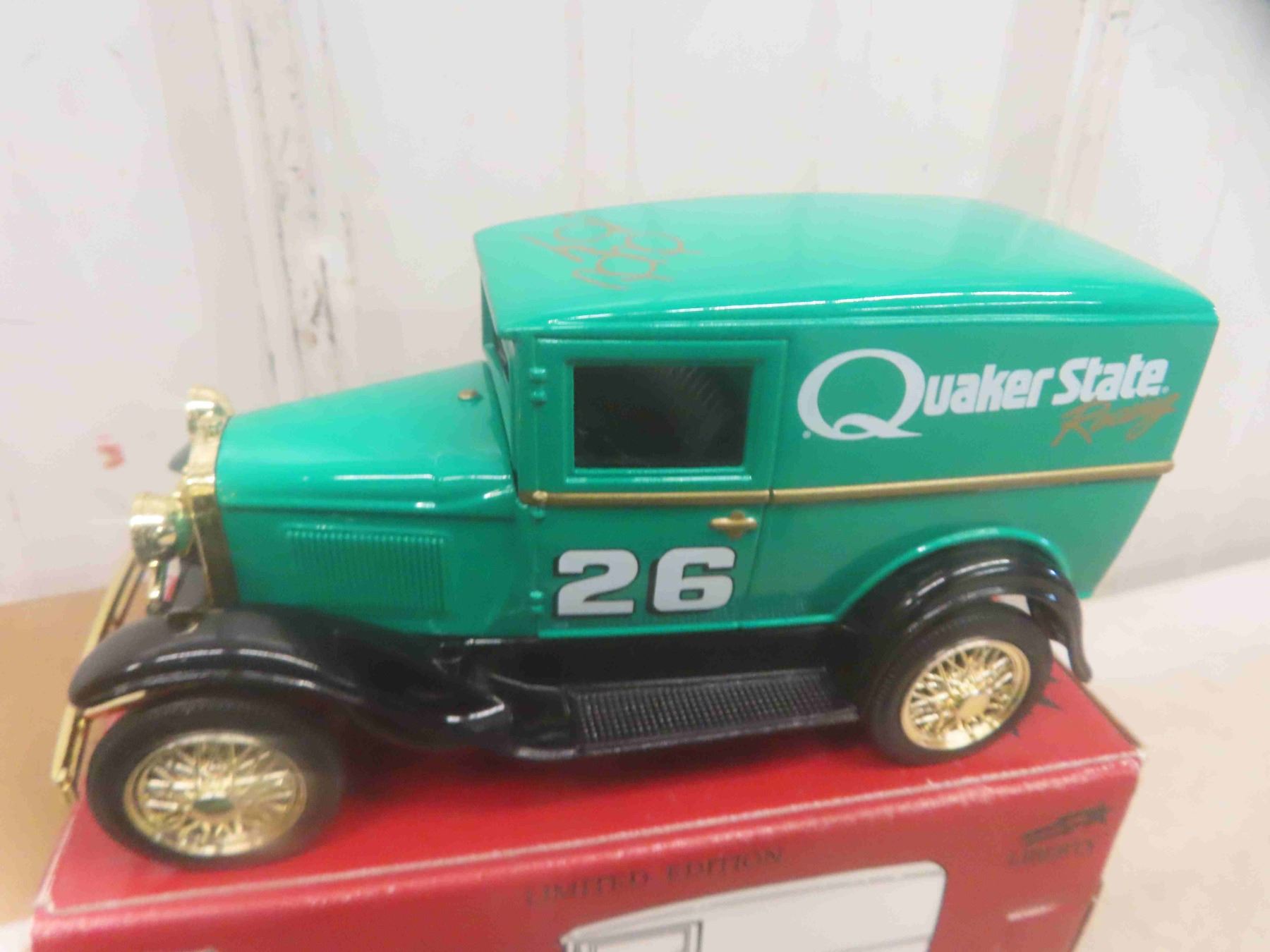 2 Quaker State Size Medium & Large Black Race Jackets, Diecast Model A Ford Delivery Van