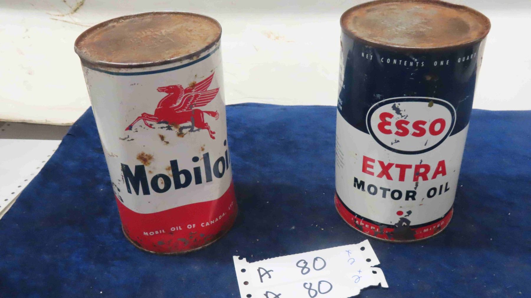 2 Quart Cans Full of Product; Esso Extra & Mobil Oil
