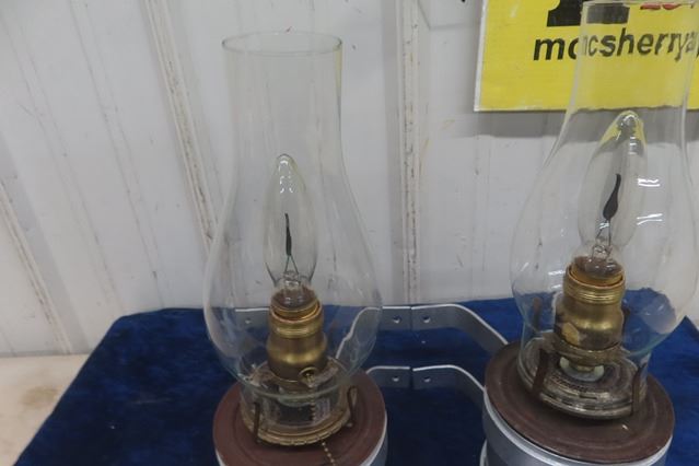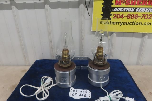 2 Railway Wall Mount Lanterns Converted to Electric - Both with Chimney