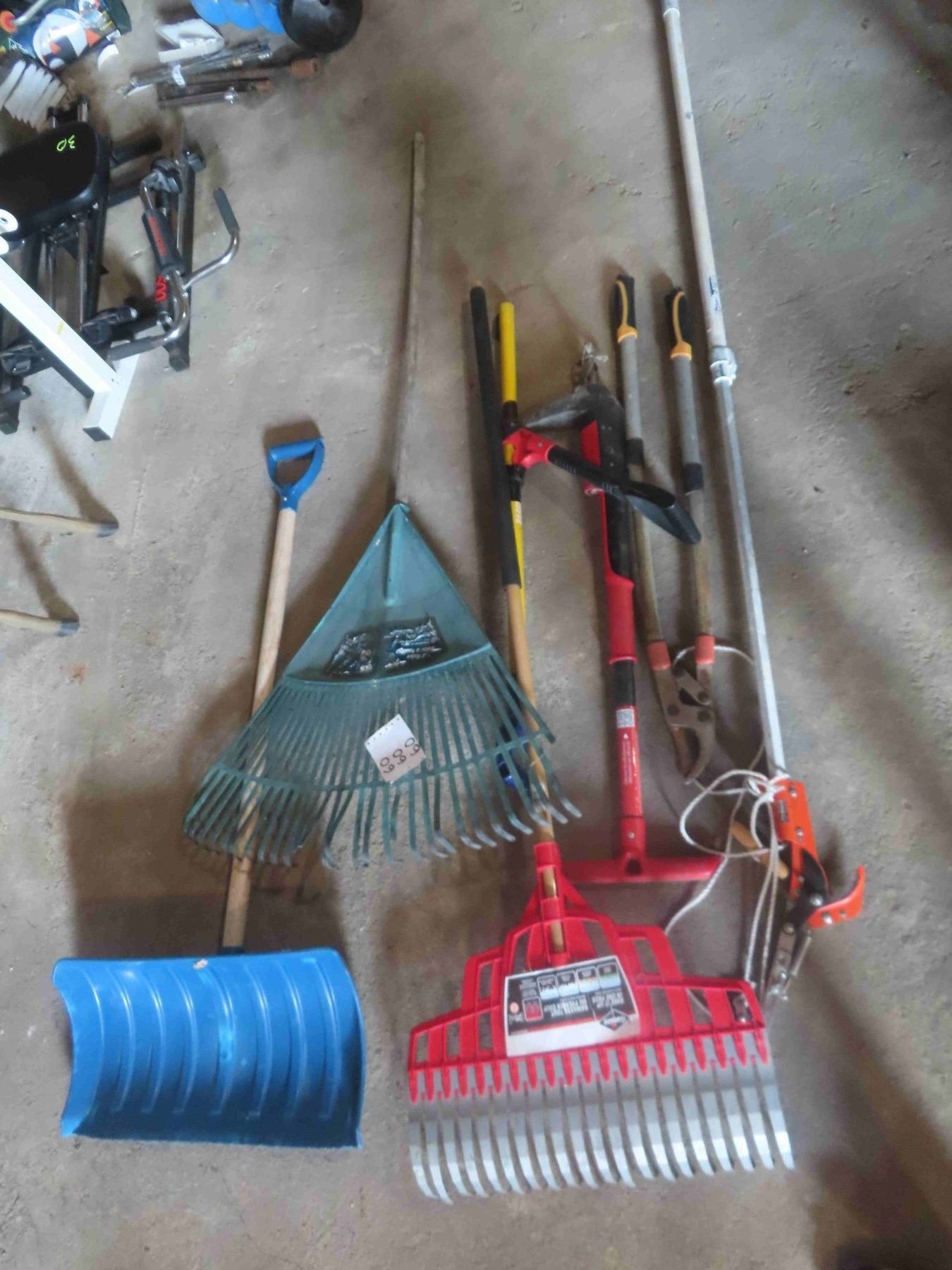 2 Rakes, Shovel, 8' Branch Cutter, Weed Puller, Back Saver Handle, Pruner