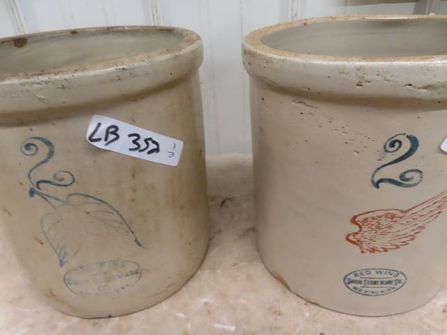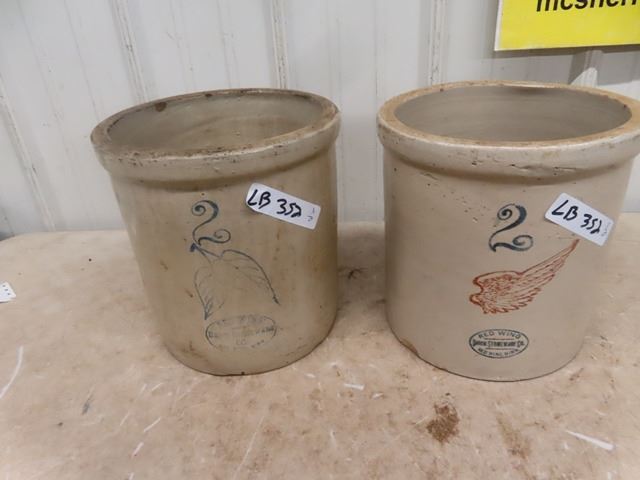 2 Red Wing 2 Gal Crocks; 1) Red Wing Label, 1) Birch Leaf Label