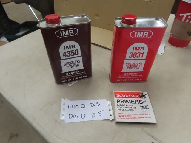 2 Reload Powders ; 1MR 4350 2/3 Full, 1 MR 3031 3/4 Full + Package 100 LG Riffle Primers - MUST PROVIDE PROOF OF PAL PRIOR TO PURCHASE - WE DO NOT SHIP AMMO