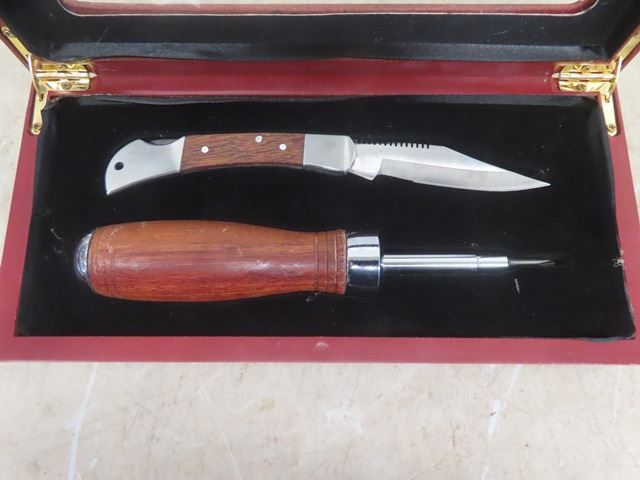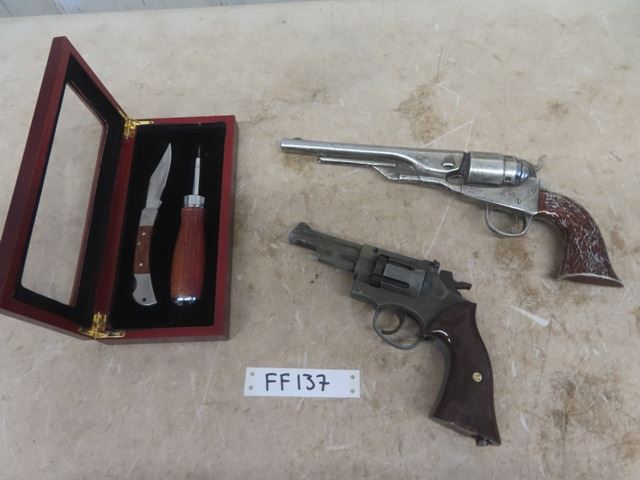 2 Replica Gun Wall Hangers, Knife, Screwdriver Set