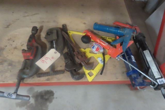 2 Ridgid Pipe Cutters, Pipe Wrenches, Caulking Guns, Plus More