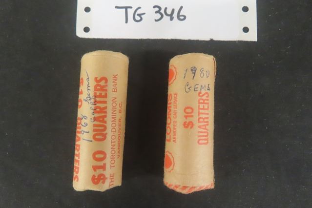 2 Rolls of 1968 + 1980 Canada 25 Cent Coins - Uncirculated Gems