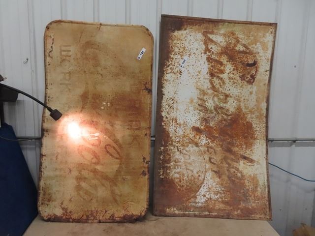 2 Rough Metal Signs 1) Coca Cola 31" X 56' & 1) Buckingham Cigarettes 35" x 59"