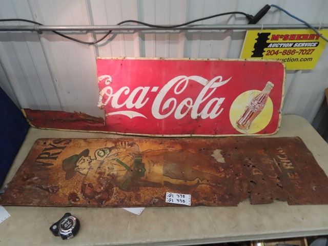 2 Rough Signs 1) Coca Cola - Parts Missing 1) Drewerys- Rusted Through