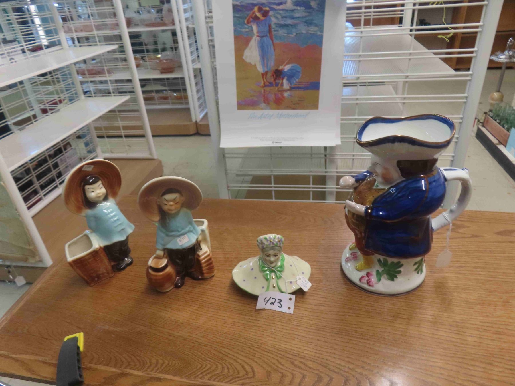 2 Royal Copley Figurines, Albertson Toby Pitcher + Lid