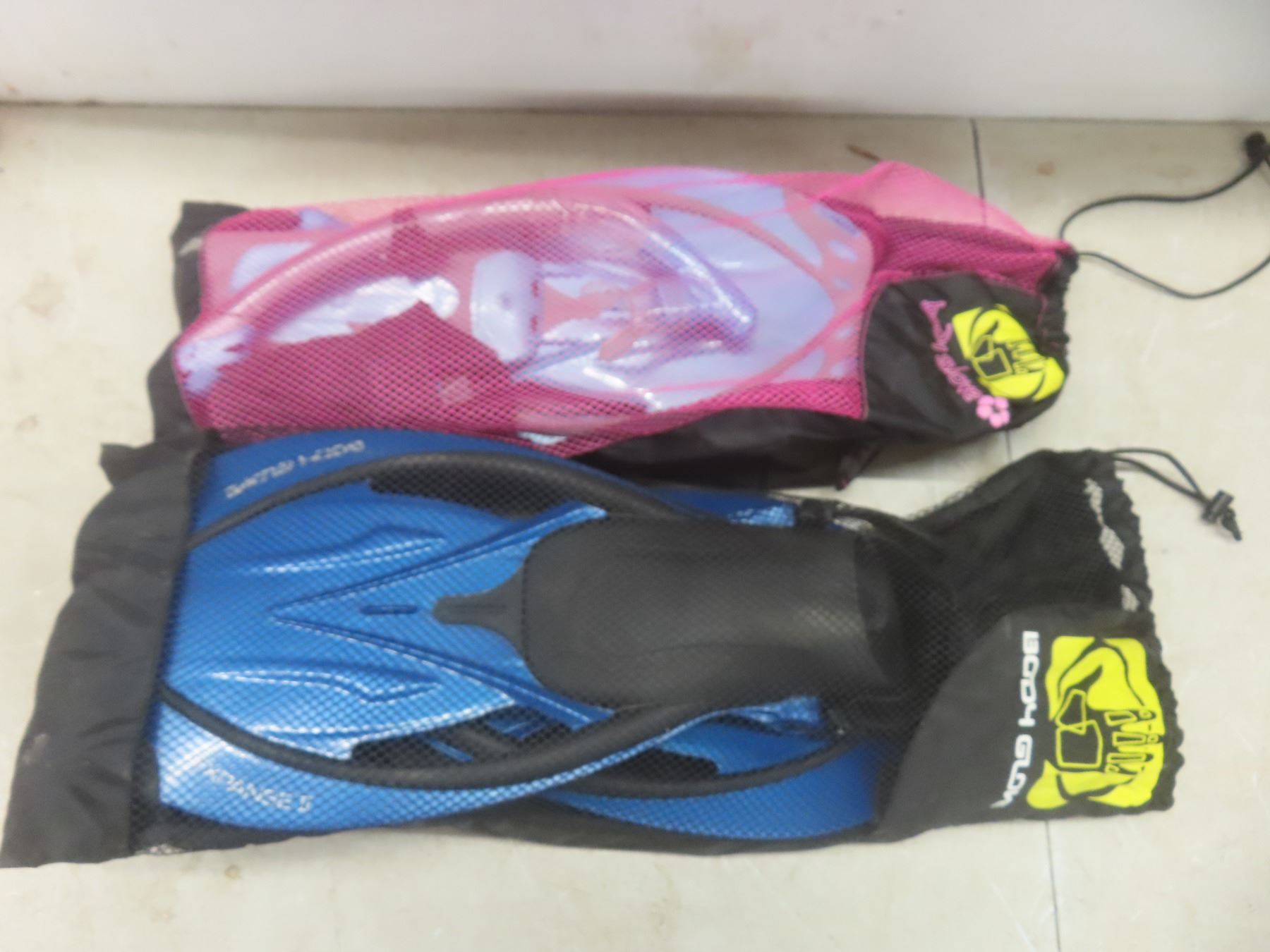 2 Sets Flippers, Snorkel and Goggles with Carry Bags