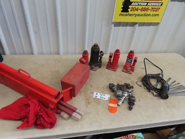 2 Sets Road Flare Kits, Hyd Bottle Jacks, Ball Hitches, Plus More