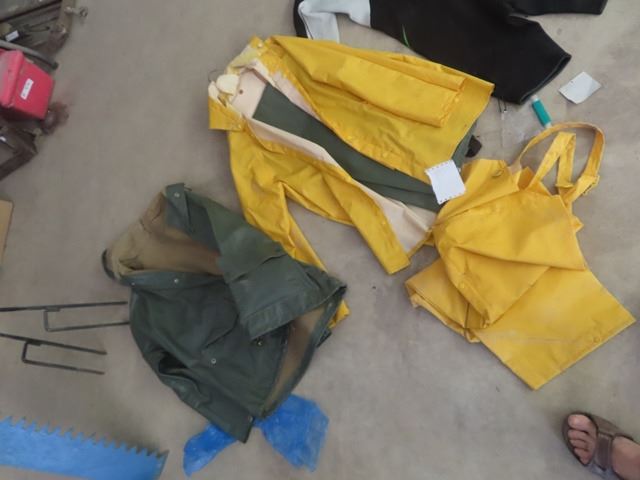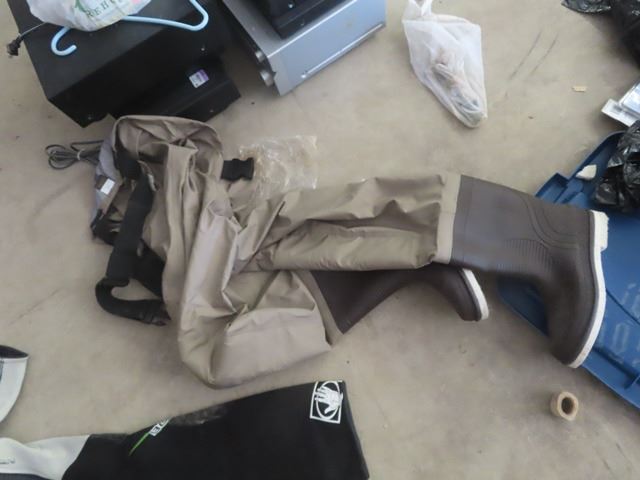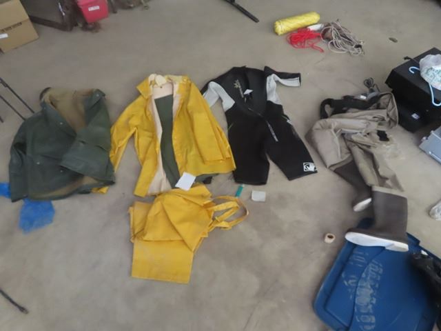 2 Sets of Rain Gear, Wet Suit Sz XL, New Chest Wadders Sz 10