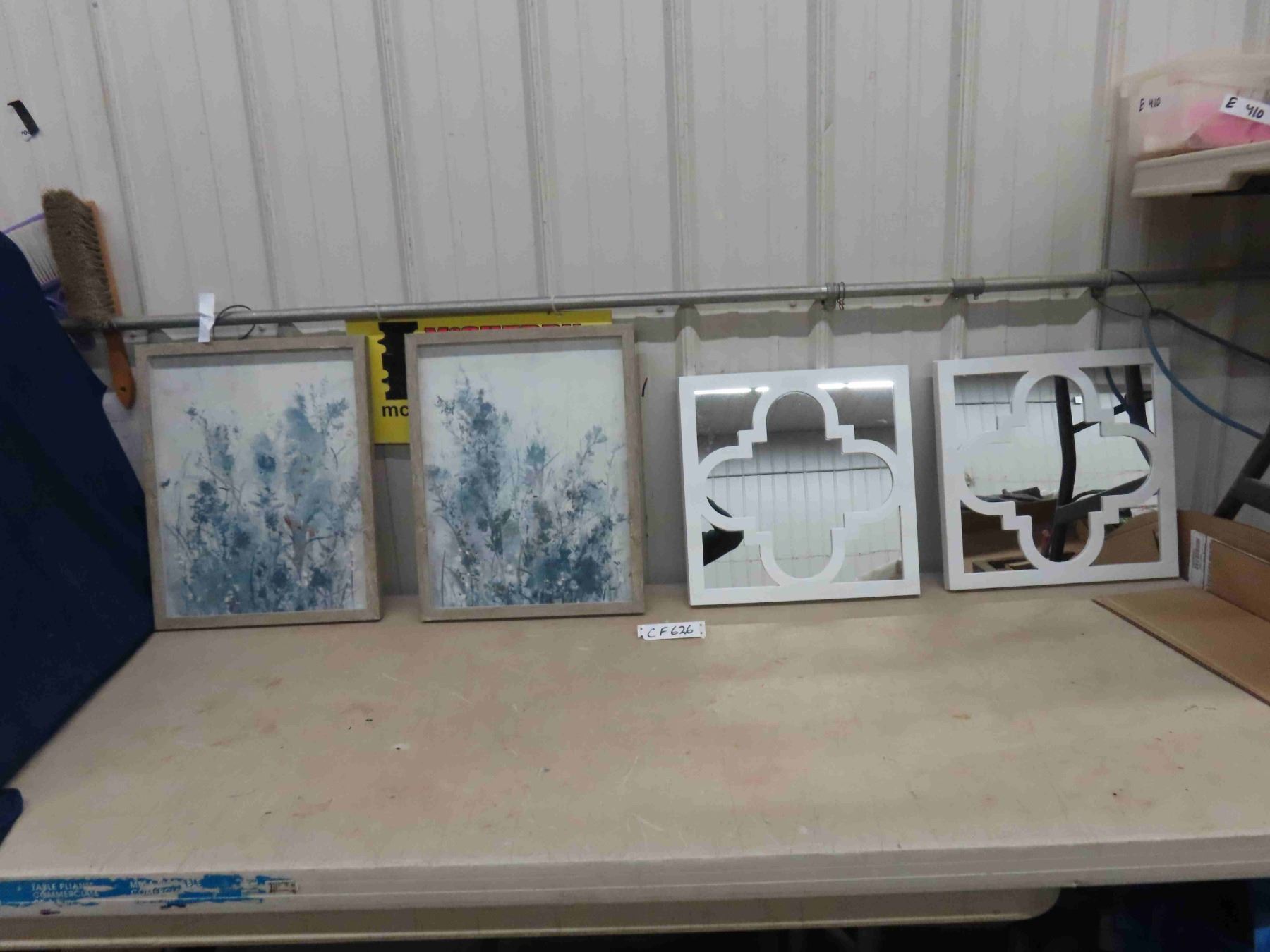 2 Shadow Box Style Pictures 15" x 19" & 2 Mirrors