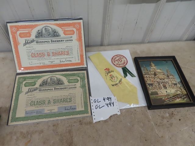 2 Shea's Brewing Certificate 1926, 75th Winnipeg Birthday Party Gear, photo of City Hall