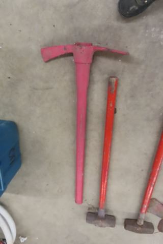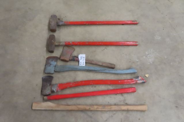 2 Sledge Hammers, 3 Axes, 2 Axe Handles, 1 Pick