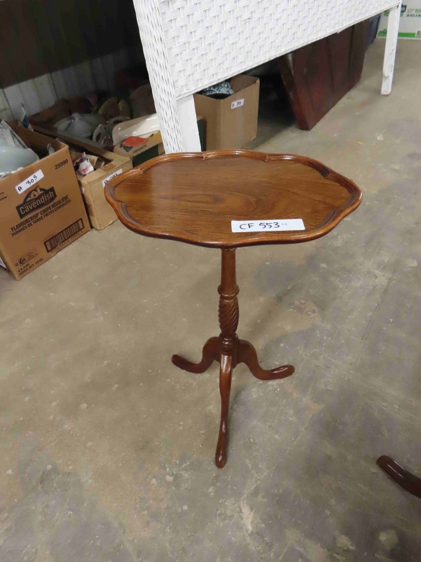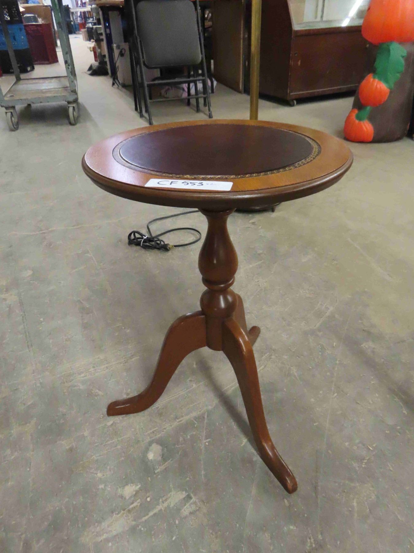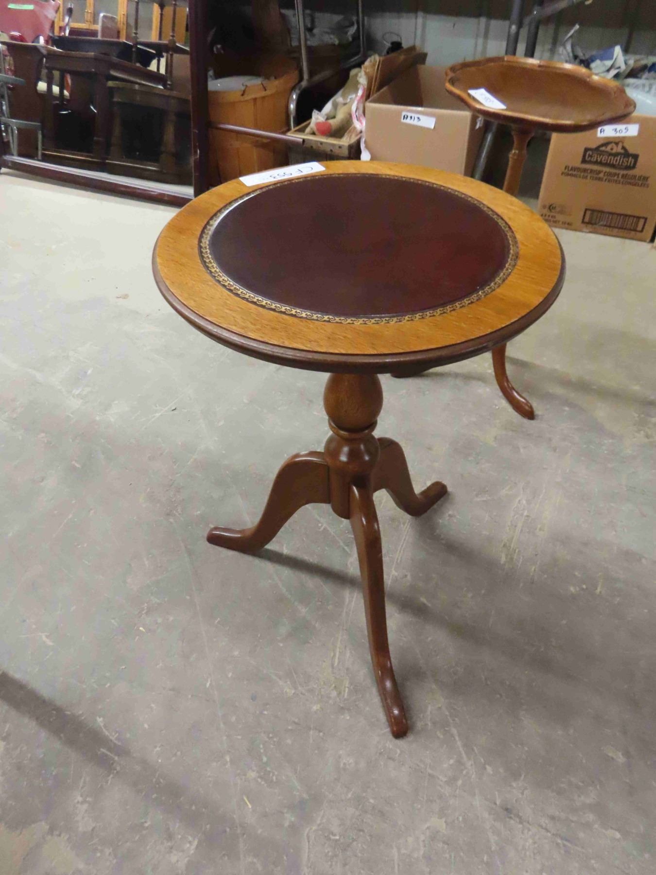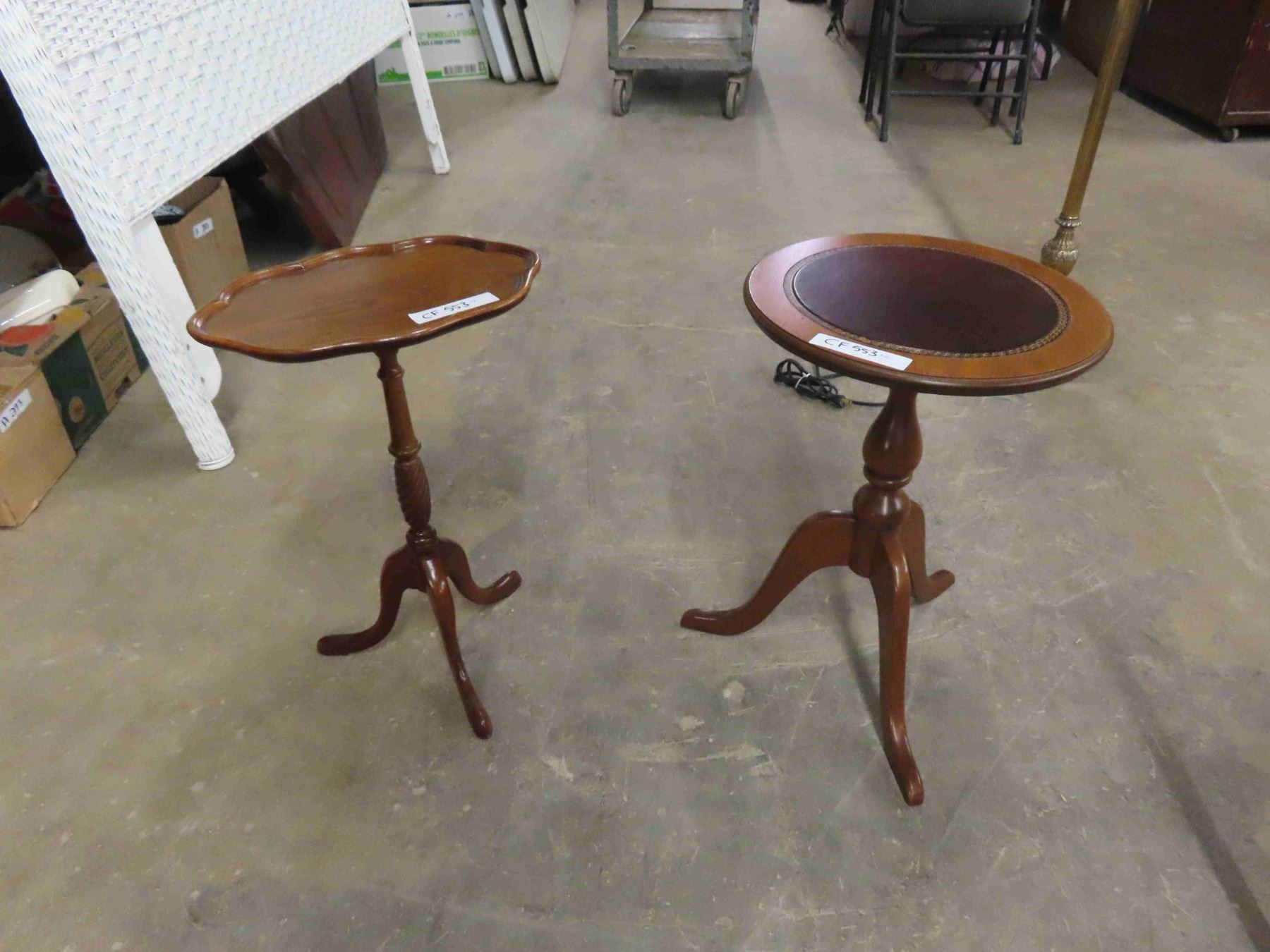 2 Small 3 Leg Pedestal Plant Stands - 1 with Leather inlay