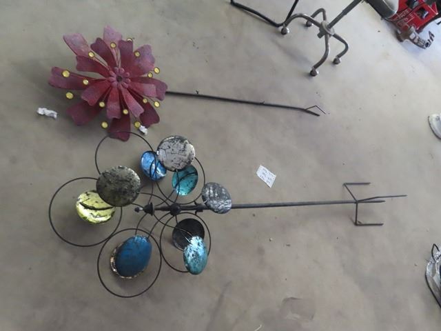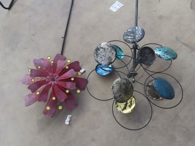 2 Spin Yard Ornaments & Cement Bird Bath 26" x 20" Rd