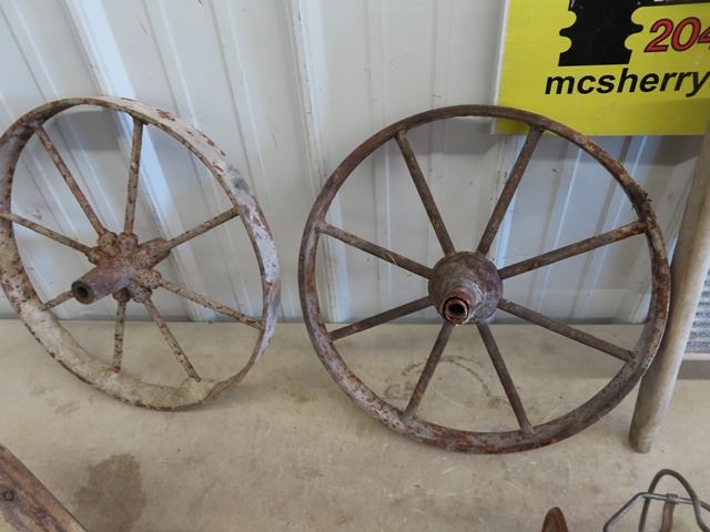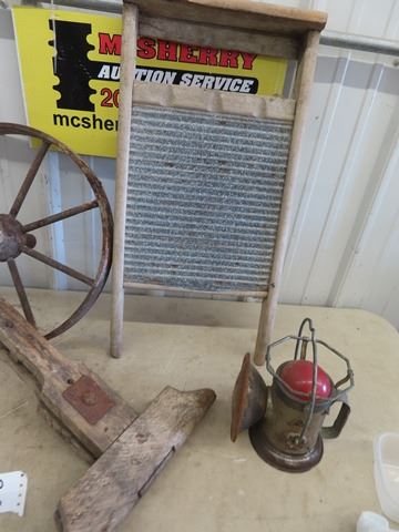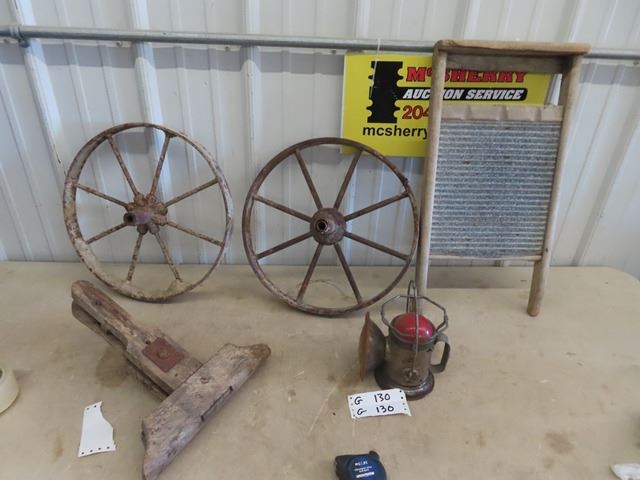 2 Steel Wheels 16" RD, Washboard, Harness Vice & Delta Lantern