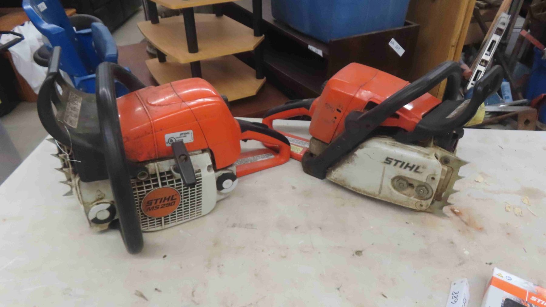 2 Stihl Gas Chain Saws (Missing Bars) , 2 New Stihl Chains - Seller States They Were Working Needs TLC