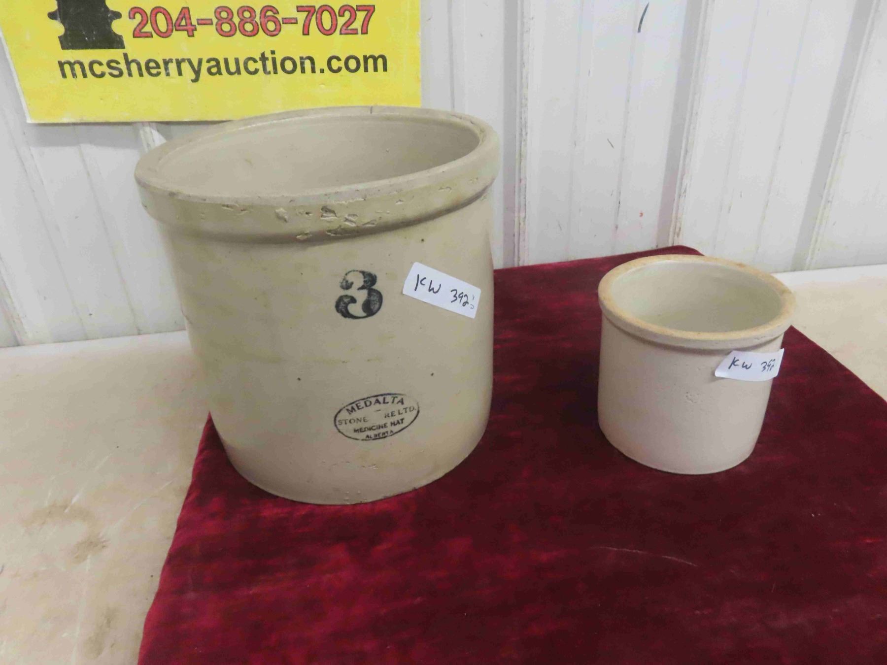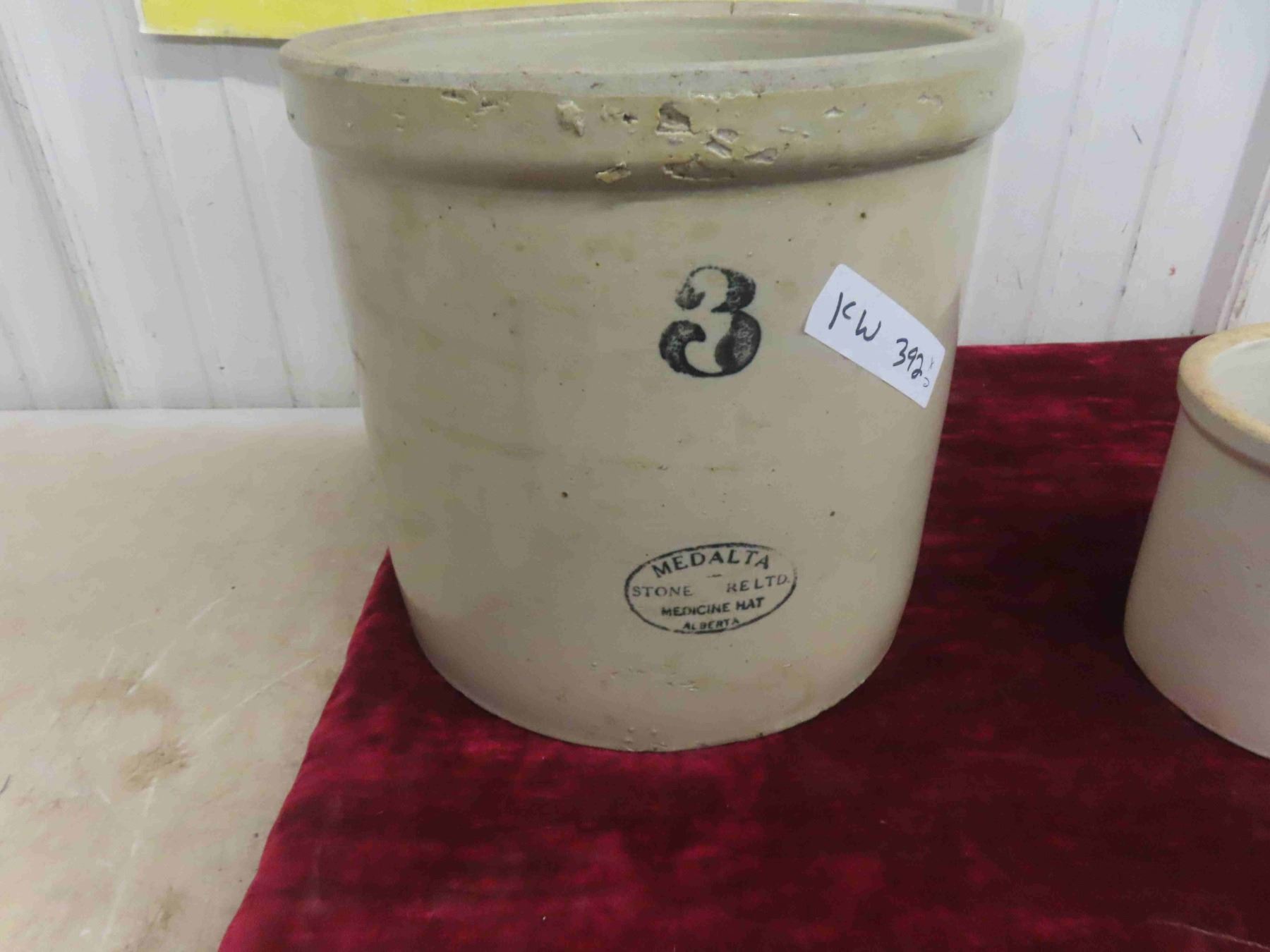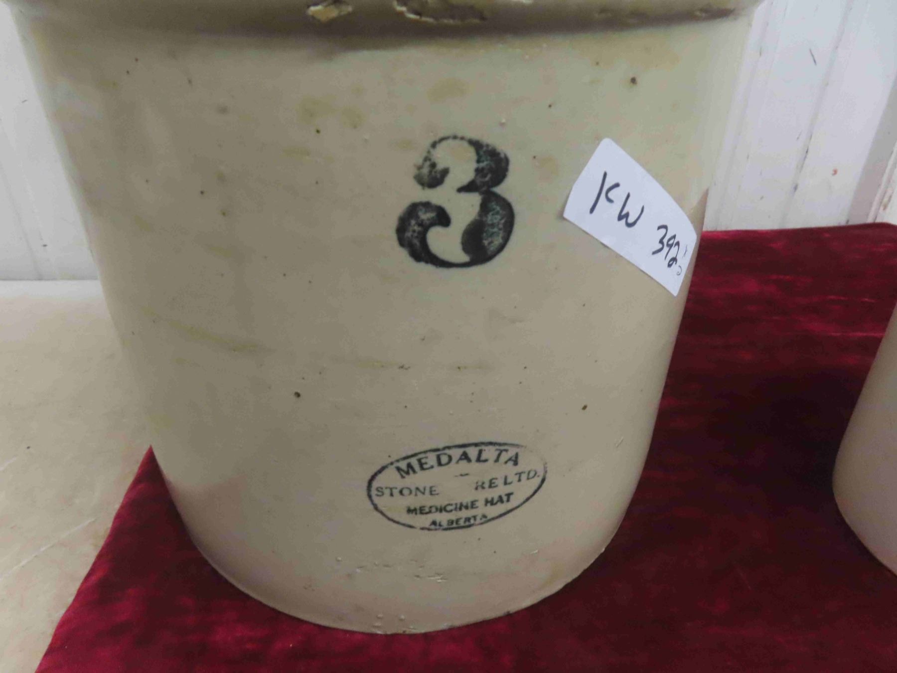 2 Stoneware Crocks (1) Medalta 3 Gallon, (1) 1/2 Gallon