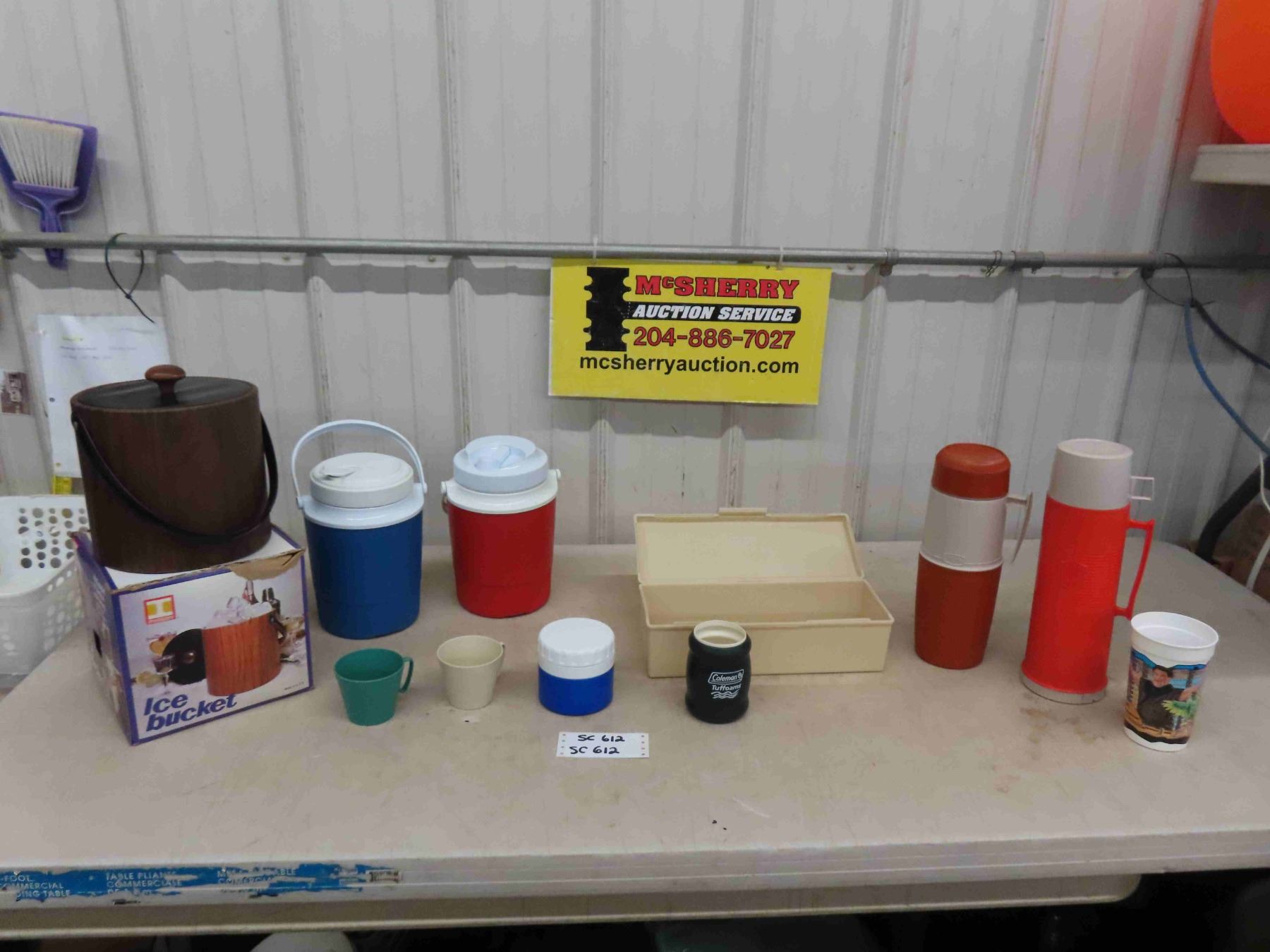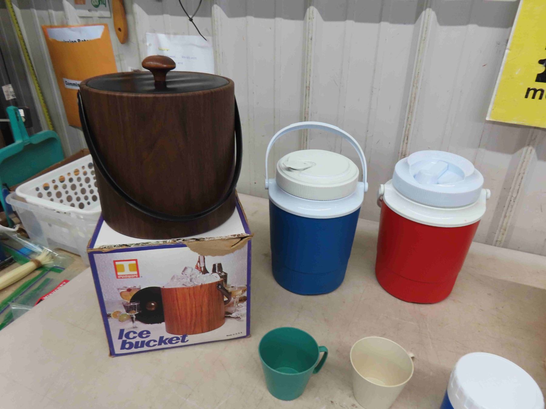 2 Thermos Water Jugs, Irvinware Ice Bucket in Original Box, 2 Large Insulated Thermos, plus more
