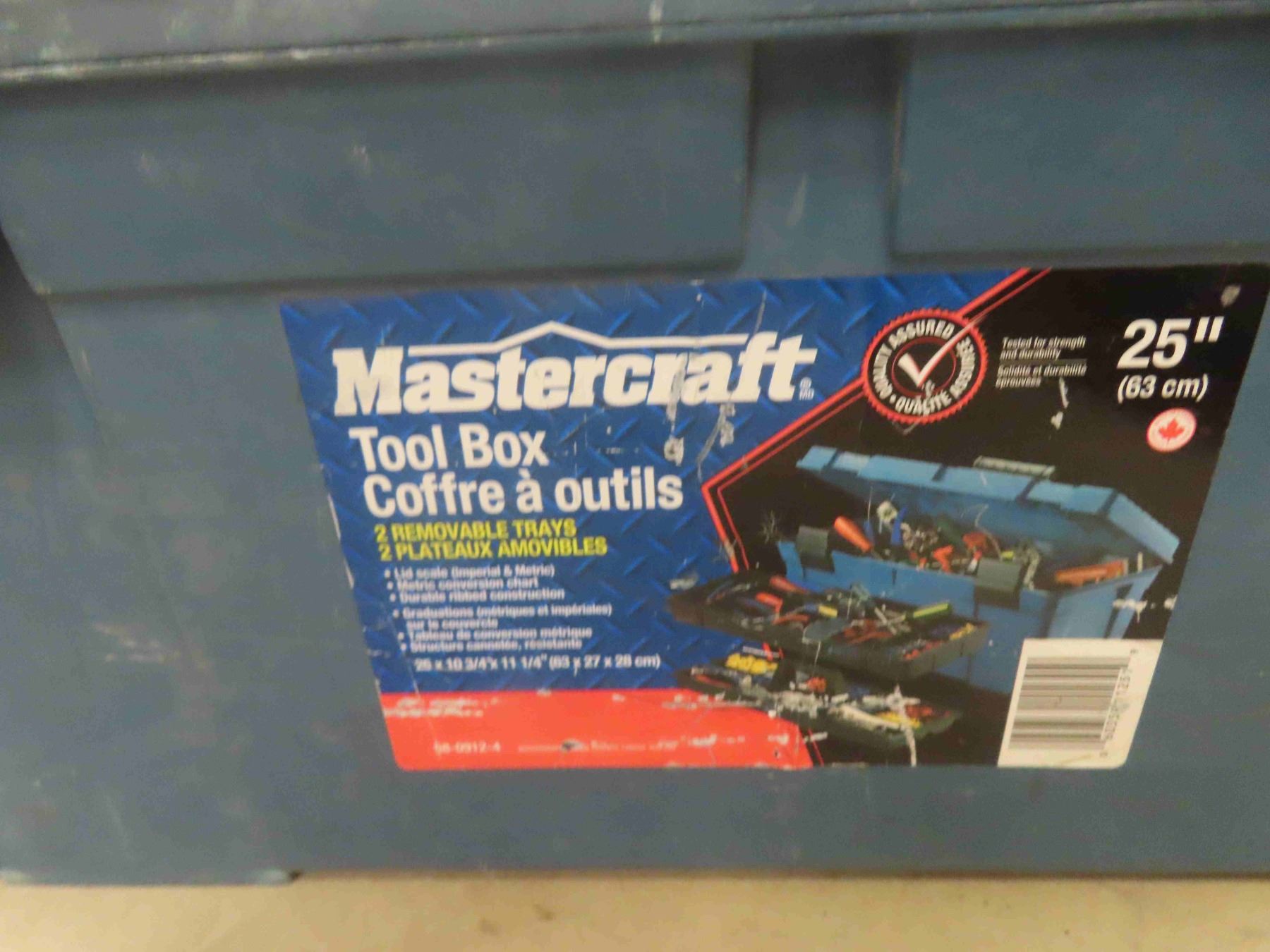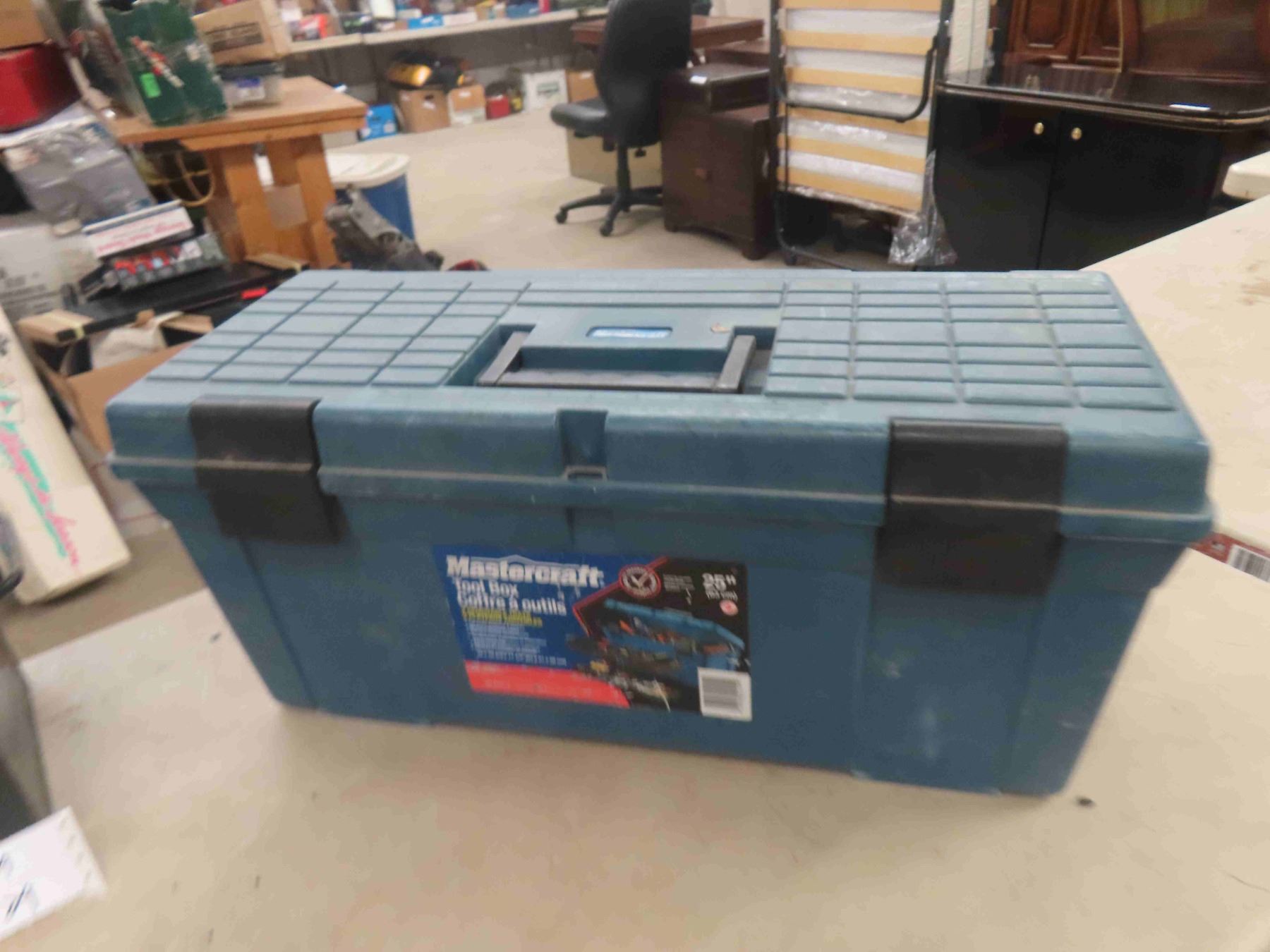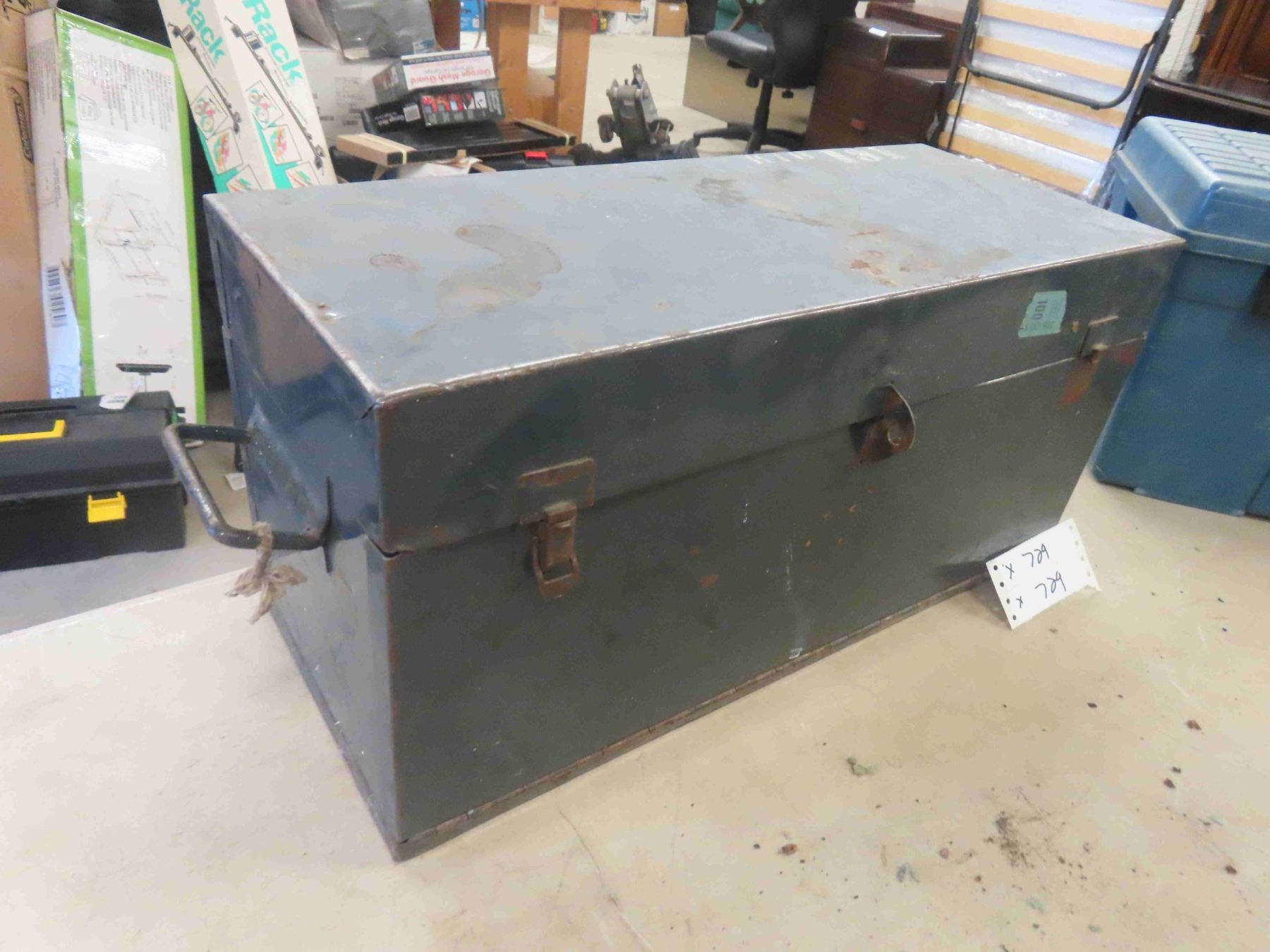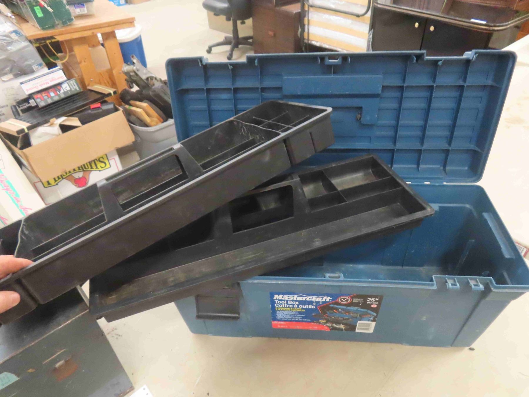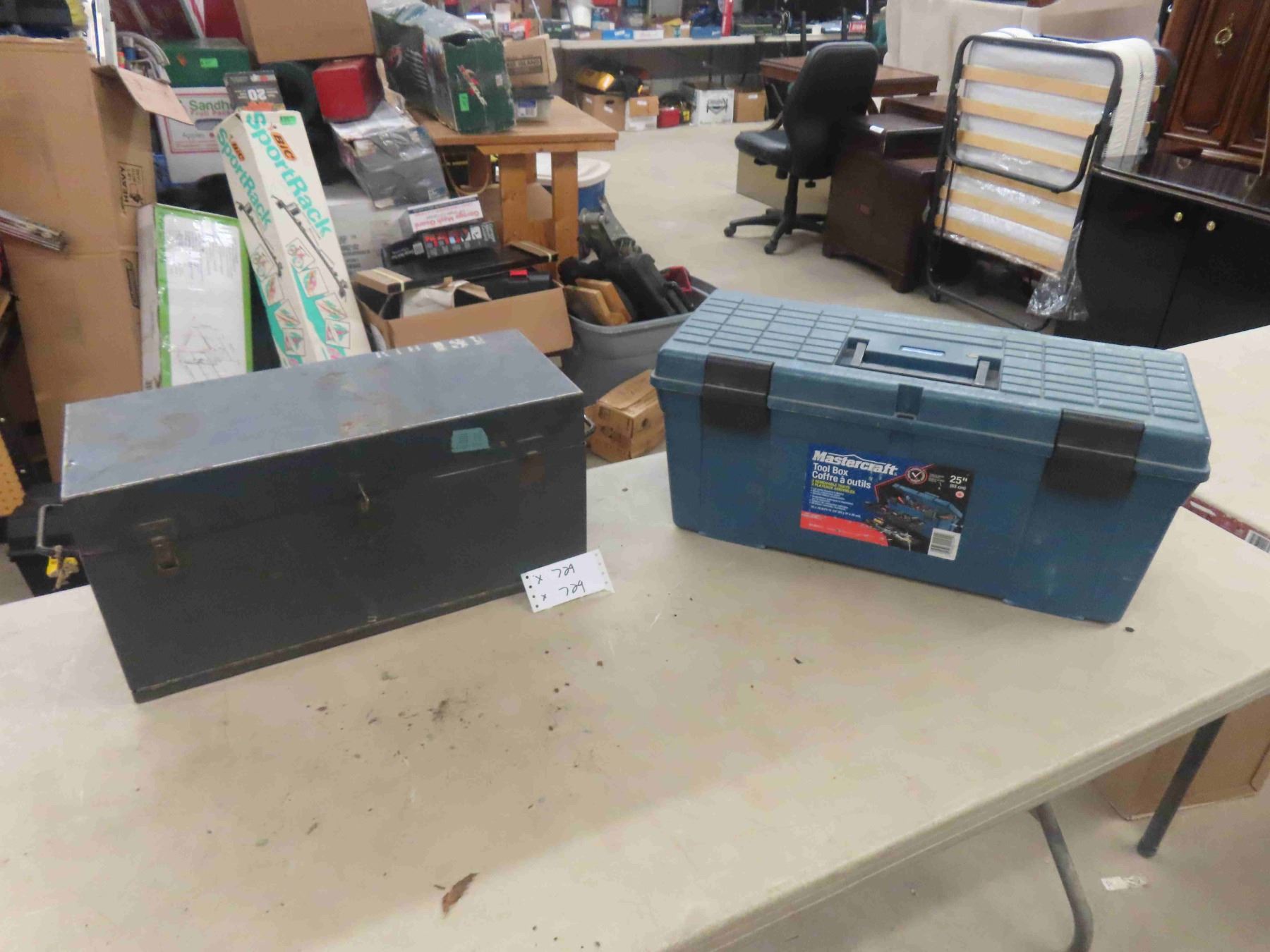 (2) Tool Boxes - One Metal 9" x 10" x 21" + 1 Poly 11" X 11" x 25"