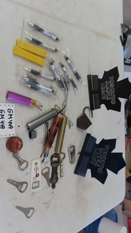 2 Toronto Maple Leaf Aluminum Book Ends, Bottle Openers, Reading Glasses, Pens, Spare Blades