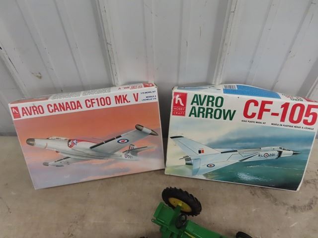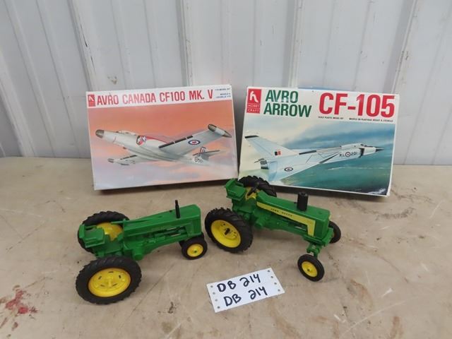 2 Toy Model Air Planes w Box & 2 Plastic JD Tractors