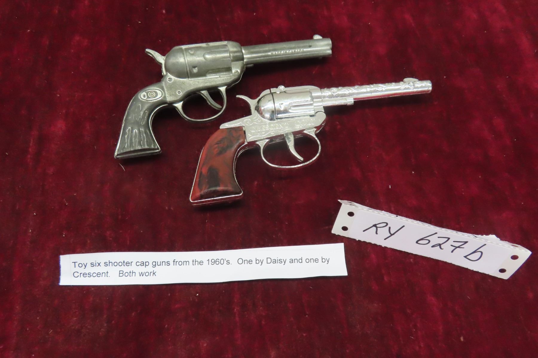 2 Toy Six Shooters Cap Guns From the 1960s, Daisy + Cresent Both Work