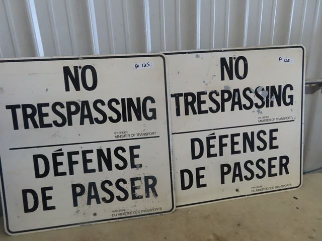 2 Trespassing Minister of Transport Signs 30" X 30"
