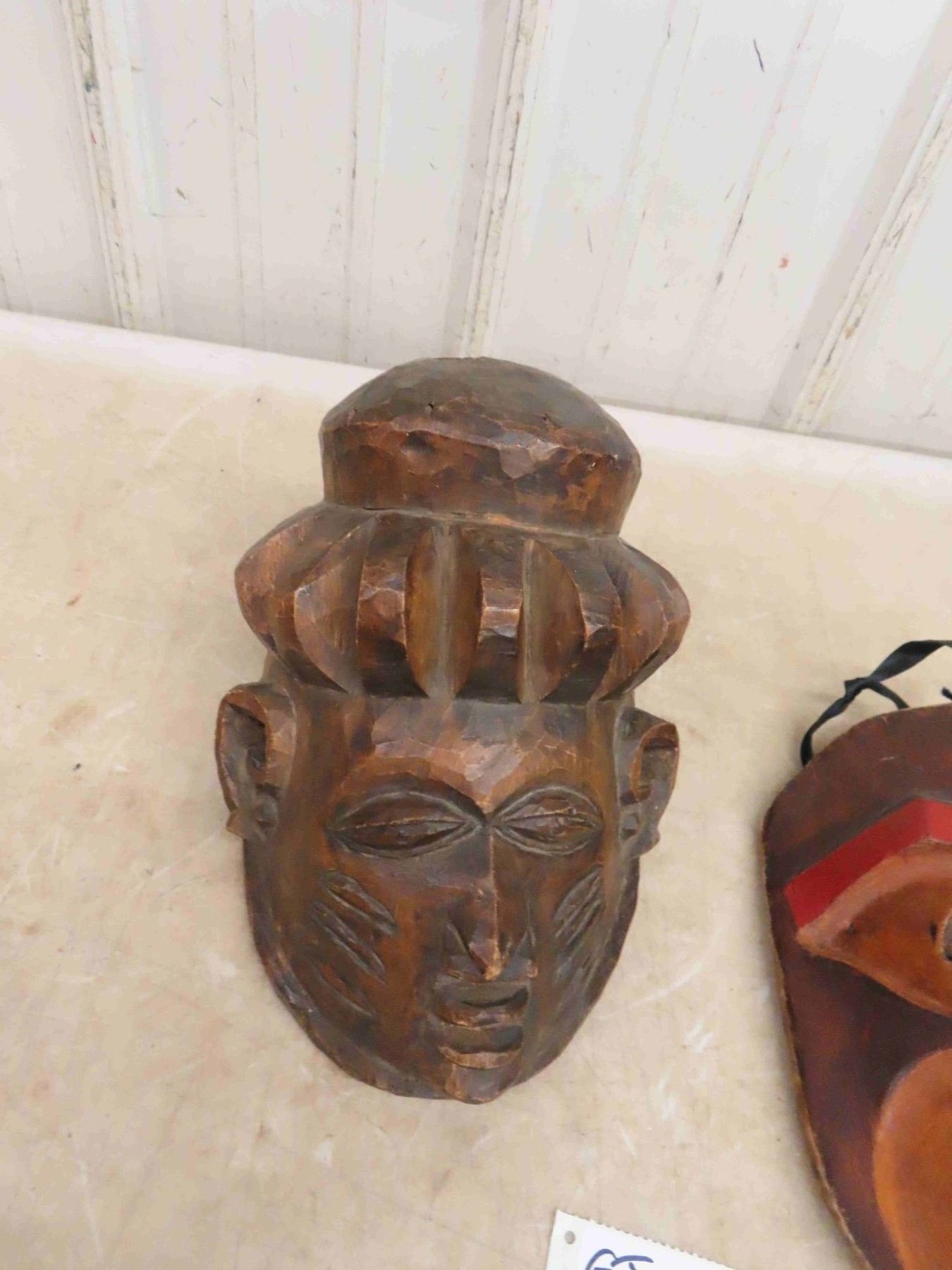 2 Tribal African Masks , 1 East Coast Wood Carved Mask