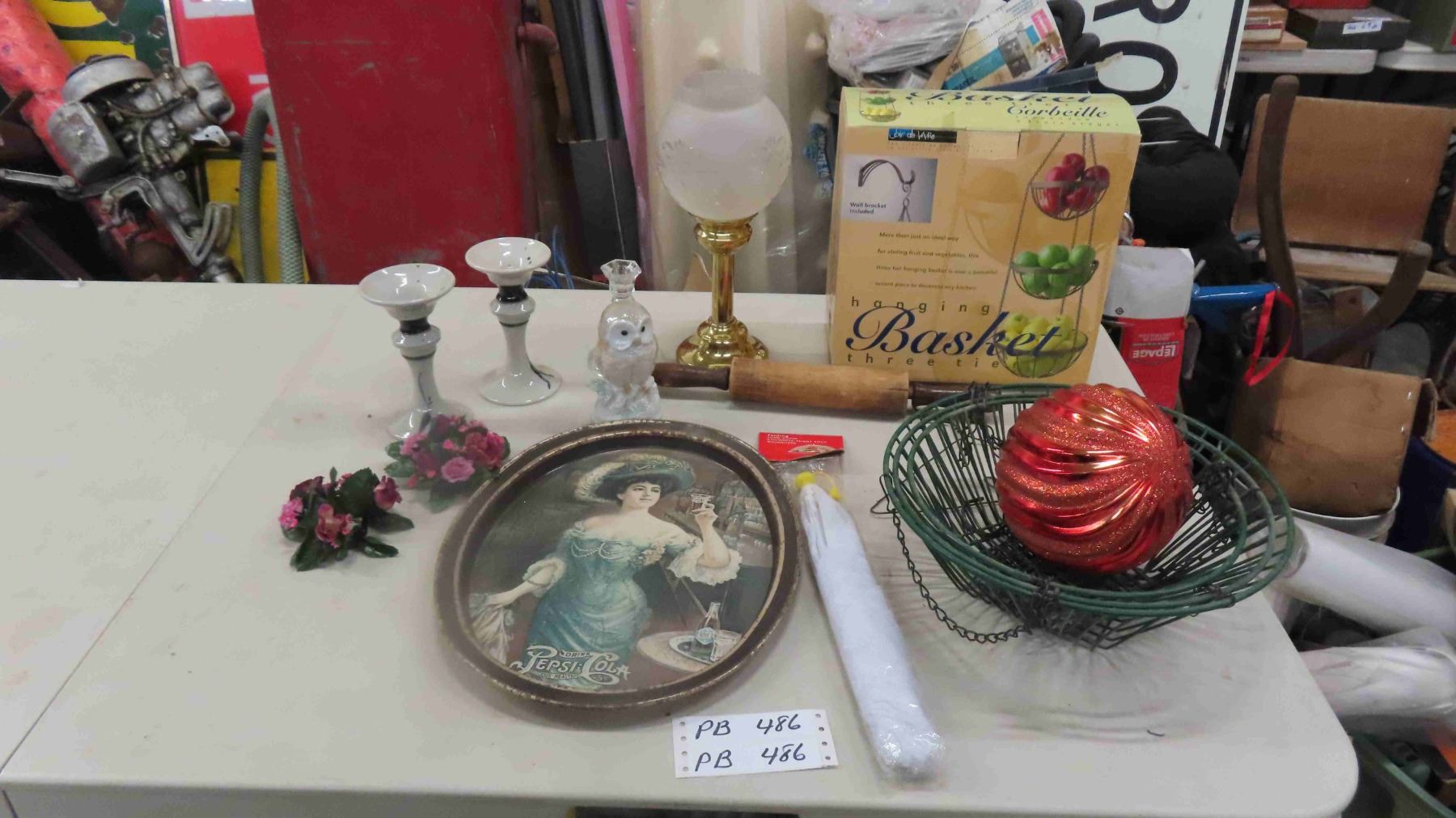 (2) Trio of Hanging Baskets- 1 New in Box, Pepsi Tray, Candle stick Holders, plus more