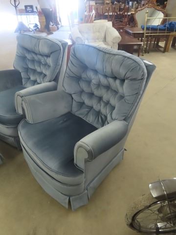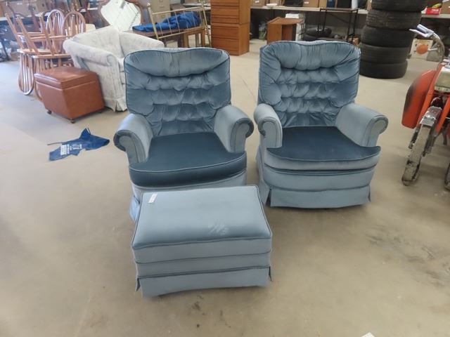 2 Upholstered Button Back Swivel Living Room Chairs with 1 Ottoman