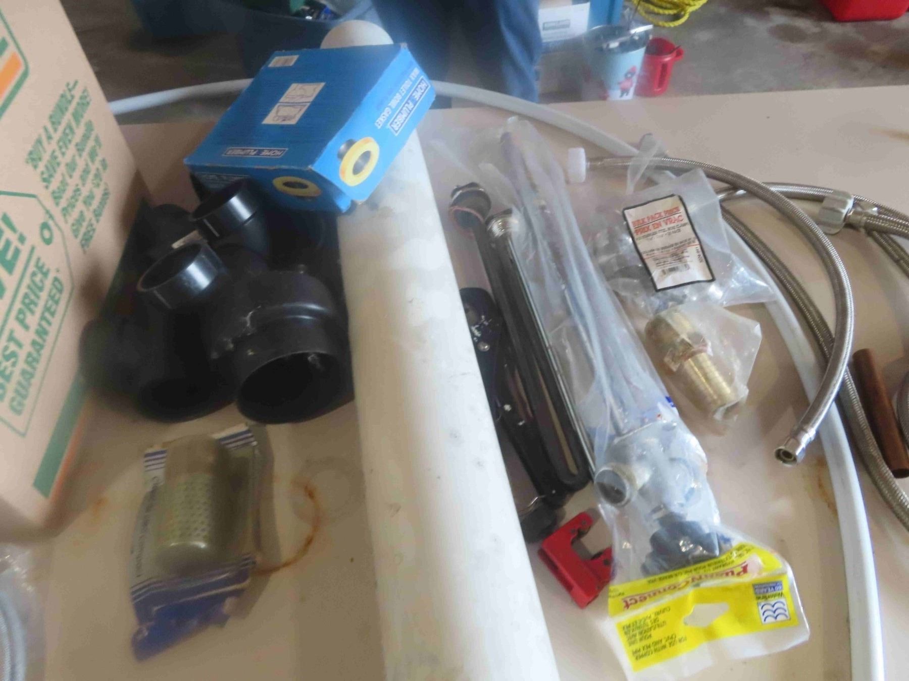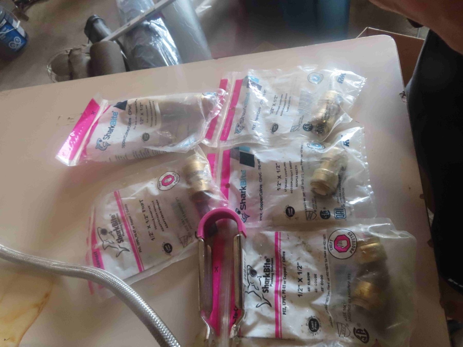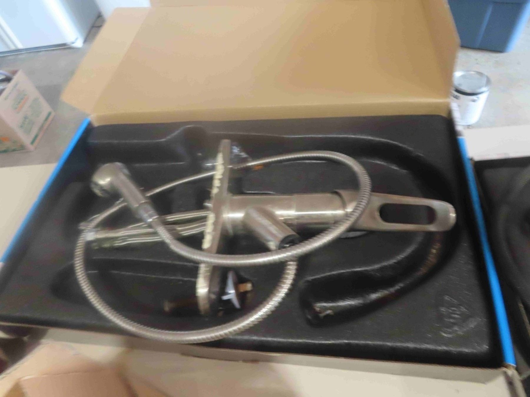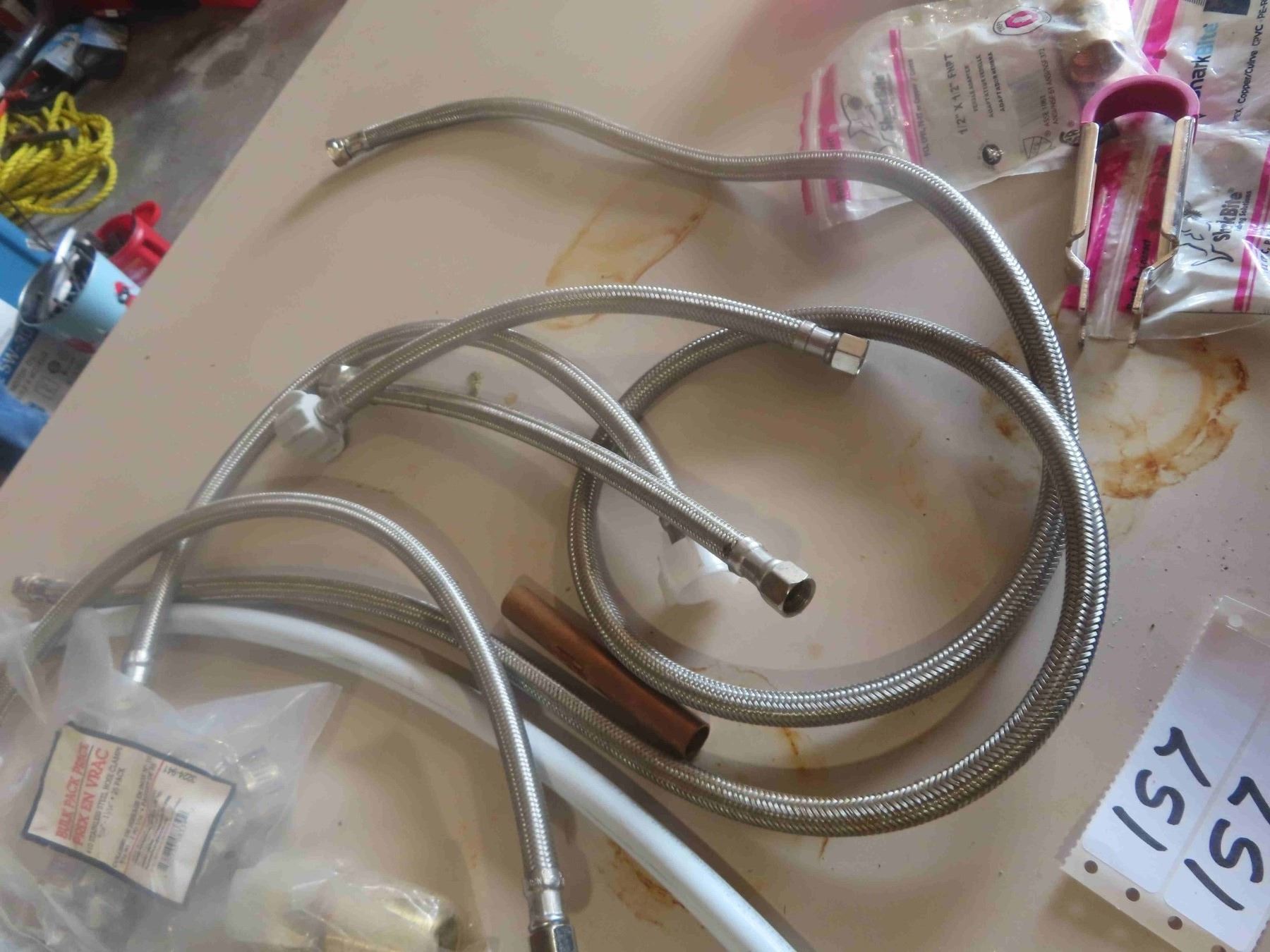 2 Used Kitchen Faucets, 5 Shark Bite Fittings Stainless Braided Hose, Water Elements, Misc. Fittings + Plumbing,