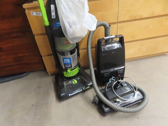 2 Vacs, 1 Bissell, 1 Hoover Powermatic & Power Force & Decanters