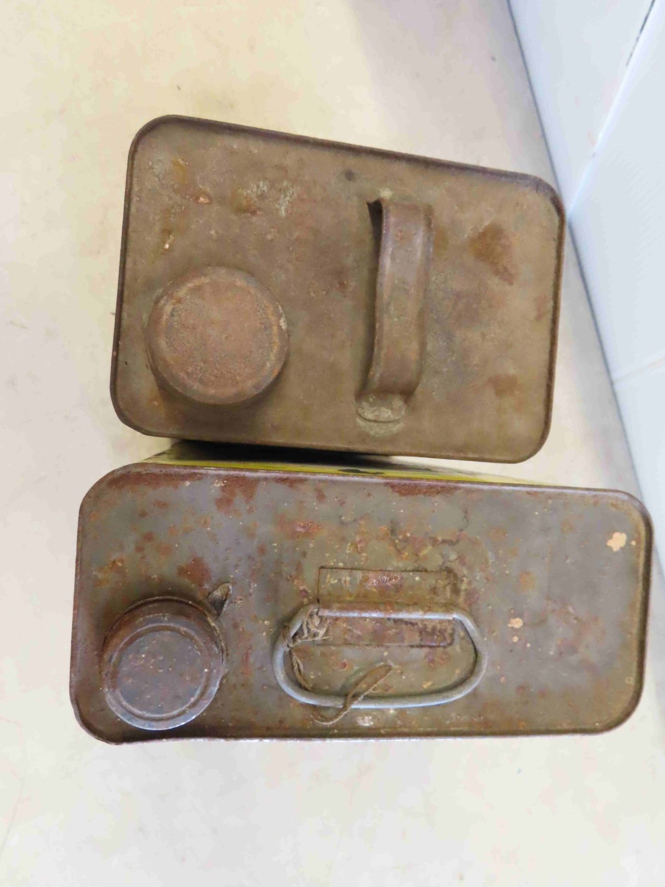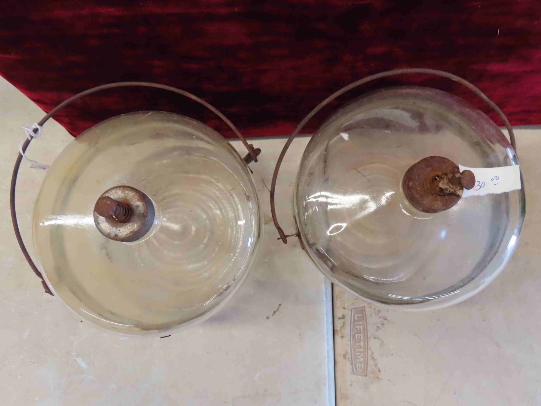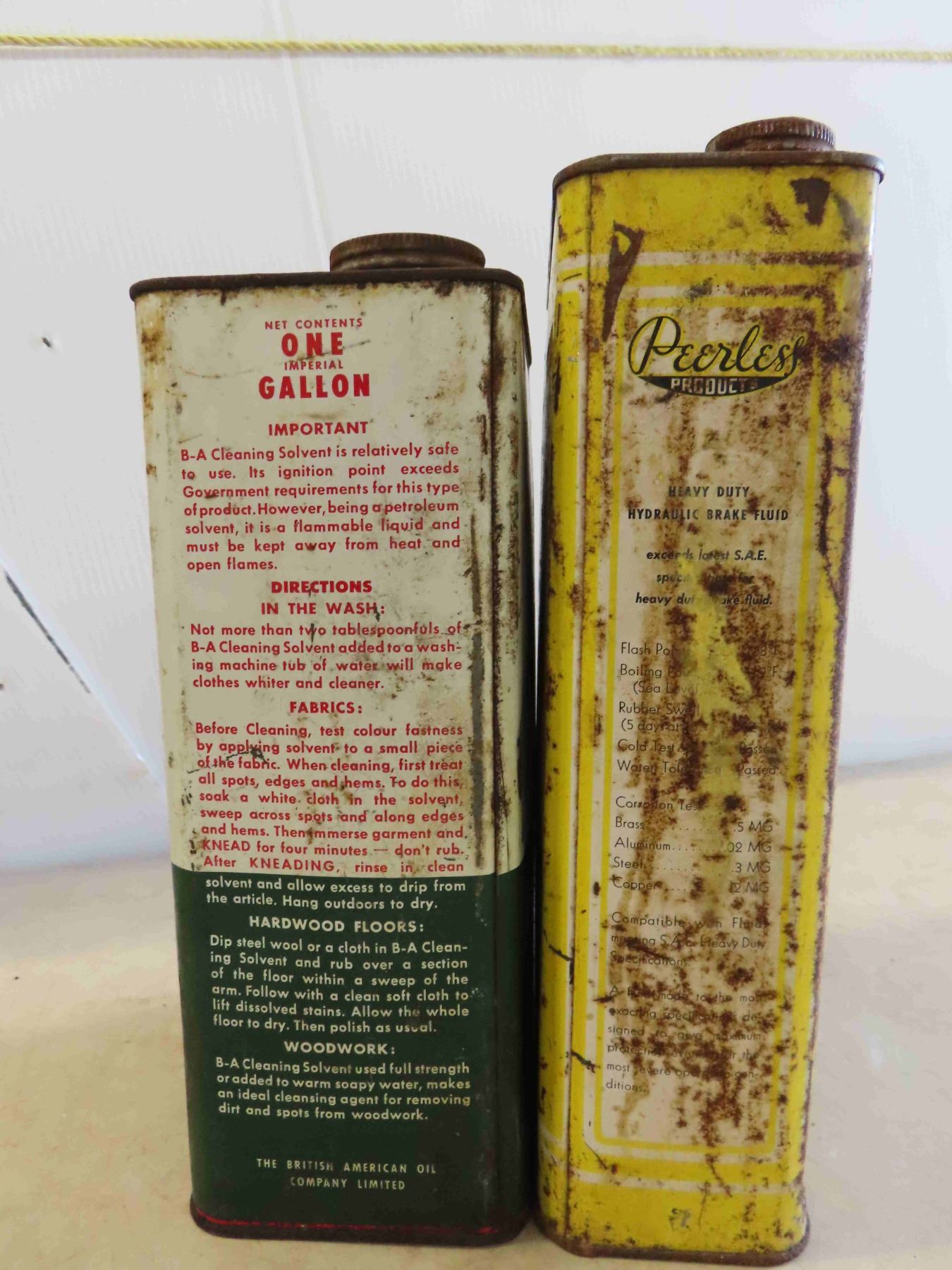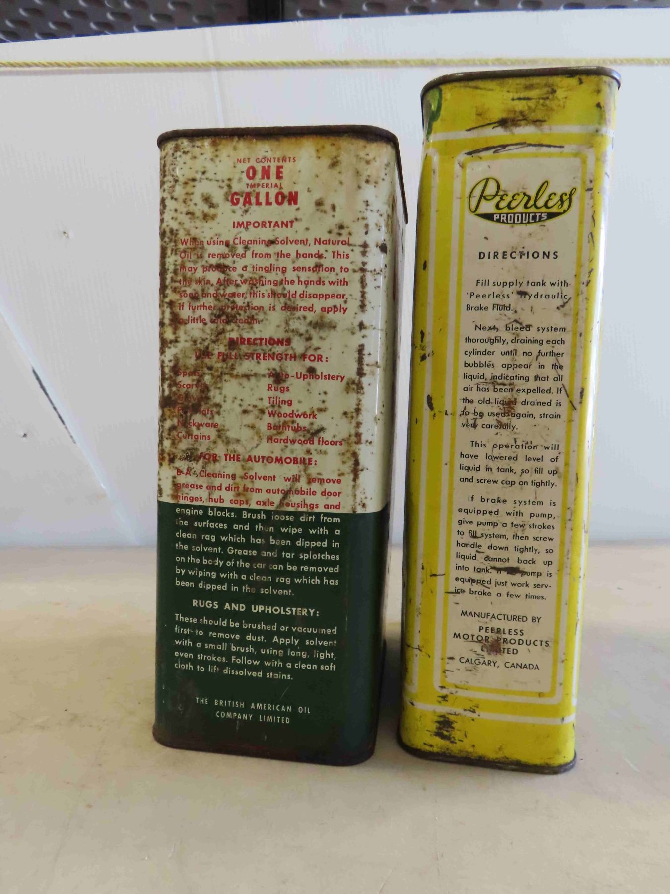 2 Vintage 1 Gallon Tins : Peerless & BA , 2 Glass Kerosene Pails