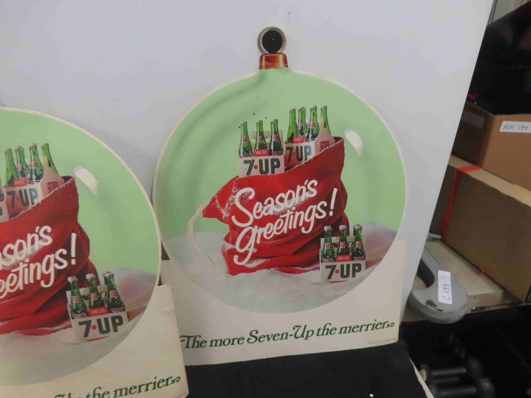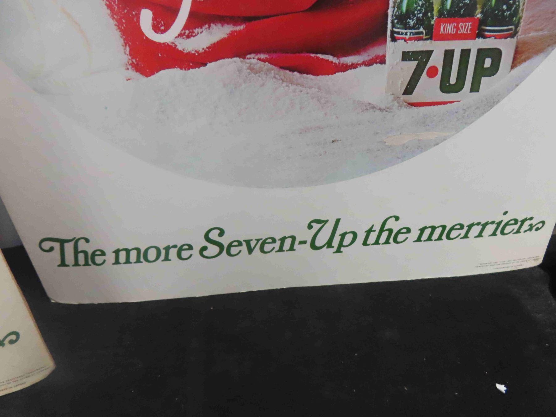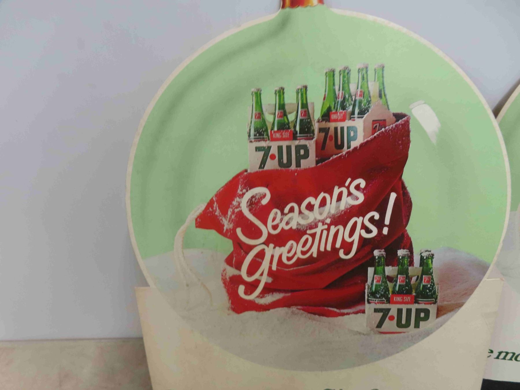 2 Vintage 7Up Advertising Cardboard Easel Back Signs - Christmas 14" x 19"